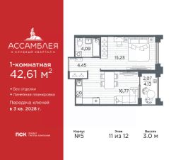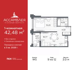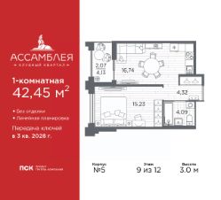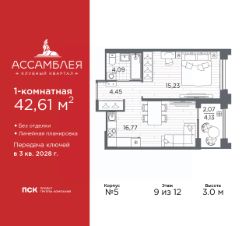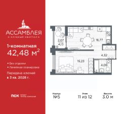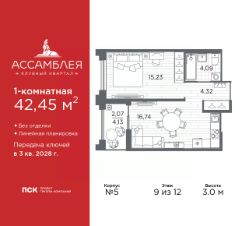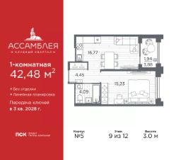 Продаётся 1-комн. квартира площадью 42,1 кв.м на 4 этаже 9 этажного дома (Корпус 2.1, Секция 6) проекта ПИК Лермонтовский 54. Светлый просторный подъезд на уровне земли, функциональная планировка, большие окна, без отделки. ''Лермонтовский 54'' находится в центре Санкт-Петербурга на набережной Обводного канала, в 5 минутах пешком от метро ''Балтийская''. Здесь будут квартиры с окнами в пол, высокими потолками и террасами. Жилой квартал находится в центре Санкт-Петербурга, в Адмиралтейском районе, на набережной Обводного канала. В 5 минутах пешком - станция метро ''Балтийская''. До Невского проспекта на автомобиле ехать 8 минут, до Московского проспекта - всего 2 минуты. Необычные фасады ''Лермонтовского 54'' напоминают о промышленной архитектуре, которая была популярна в Санкт-Петербурге в конце XIX и начале XX века. Материал отделки - прочный кирпич, который прослужит до 100 лет. А благодаря системе чиллер-фанкойл на фасадах не будет блоков кондиционеров - всё охлаждение происходит внутри здания. В ''Лермонтовском'' возводятся дома высотой от 7 до 9 этажей с небольшим количеством квартир: на этаже может быть всего две квартиры. Во дворах будут закрытые парки с детскими площадками и местами для отдыха, а на подземном этаже - паркинг с удобной навигацией. Между домами протянется пешеходный бульвар для прогулок и отдыха, для велосипедистов предусмотрены специальные дорожки и парковки. В 2024 году в ''Лермонтовском 54'' открылся лицей на 1000 мест. Он разместился в здании 1824 года - раньше здесь было Николаевское кавалерийское училище. Во всех квартирах будут трёхметровые потолки и окна в пол. На первых этажах откроются магазины, кафе и другие сервисы. Со стороны набережной в домах, которые признаны объектами культурного наследия, мы разместим общественные пространства. Недалеко от ''Лермонтовского 54'' находится Юсуповский дворец, парк Екатерингоф, на машине можно доехать до острова Новая Голландия и Мариинского театра. Рядом работают школы, детские сады, торговые центры и гипермаркеты. Артикул 921252 (Застройщик ООО ''СПЕЦИАЛИЗИРОВАННЫЙ ЗАСТРОЙЩИК ''АЛЬМАНДИН'') [cn_sbp_1804419]