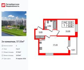 Продается просторная 1-комнатная квартира от застройщика в жилом комплексе ''Парадный ансамбль'' в престижном Московском районе.До метро можно добраться на транспорте всего за 20 минут.Удобная, классическая, функциональная европланировка, большая кухня-гостиная 17.43 м², просторная прихожая 5.65 м². Общая площадь квартиры - 37.55 м², жилая 10.55 м², высота потолка 3.07 м.Квартира продается с отделкой ''NORD LINE WHITE''.Что особенного в ЖК ''Парадный ансамбль''?• Инновационный Лицей Setl с оригинальной архитектурной концепцией и уникальной образовательной средой• Масштабное малоэтажное строительство в престижном Московском районе• Рекреационные зоны: парадный парк в центре квартала, ручей с собственной набережной, центральная площадь, ресторанный комплекс и пешеходный бульвар• Фасады из керамогранита и кирпича с яркими и акцентными входными группами• Две самые большие площадки Setl Kids и Setl Sport• Уникальные квартиры.High Flat на последних этажах, палисадники у квартир на первом этаже, семейные секции, квартиры с саунами и окном в ванной