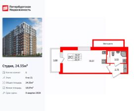 Продается уютная студия от застройщика в жилом комплексе ''Pulse Premier'' в активно развивающимся Невском районе.До метро можно добраться на транспорте всего за 10 минут.Удобная, классическая, функциональная европланировка, вместительная прихожая 3.05 м². Общая площадь студии - 24.2 м², жилая 18 м², высота потолка 2.77 м.Квартира продается с отделкой ''NORD LINE WHITE ВК''.Что особенного в ЖК ''Pulse Premier''?• Премиальные виды на Неву• Отличная транспортная доступность: 2 станции метро и крупные магистрали• Пешеходный променад с ландшафтным дизайном и зонами отдыха• Центр притяжения - городская площадь у набережной с современным благоустройством• Алюминиевые окна в квартирах High Flat (последние этажи)