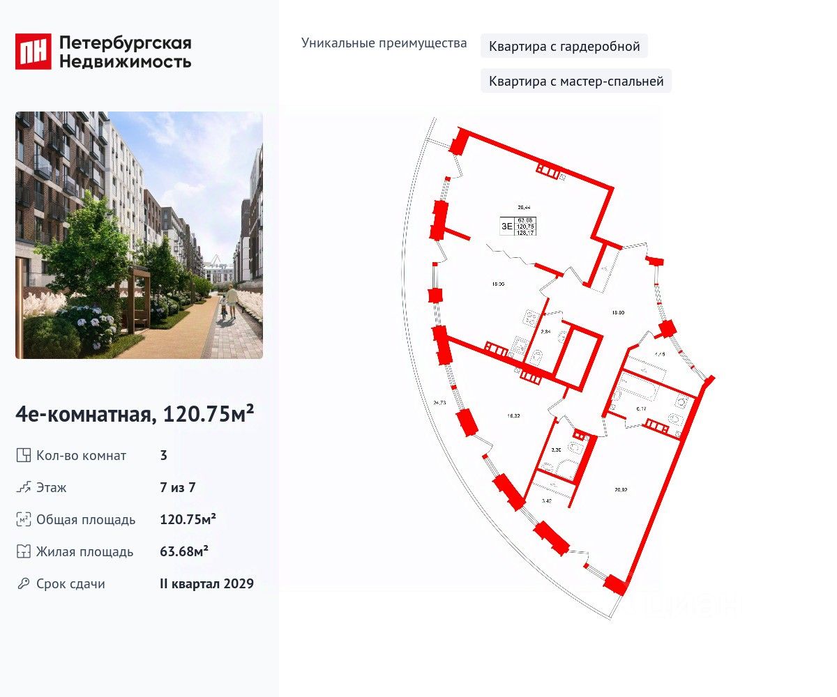 Продается просторная, семейная 3-комнатная квартира от застройщика в жилом комплексе ''Аристократ'' в уютном Василеостровском районе. До метро можно добраться пешком всего за 10 минут. Мастер-спальня с собственной ванной комнатой. Самое приватное пространство в вашей квартире. Уникальная, функциональная европланировка, большая кухня-гостиная 18.06 м², просторная прихожая 18.8 м². Общая площадь квартиры - 120.75 м², жилая 63.68 м², высота потолка 3.6 м. Квартира продается c черновой отделкой. Что особенного в ЖК ''Аристократ''? • Васильевский остров - историческая локация с современными культурными кластерами • Индивидуальный облик каждого корпуса в единой архитектурной концепции • 7 парадных лобби с потолками до 7-ми метров • Цветущие сады, зеленые гостиные, фонтаны • Клуб резидентов ''Аристократ'': фитнес-клуб, коворкинг, гостиная с роялем, детский центр с кинотеатром • Технологичная среда на территории, в доме и в квартире • Премиальная отделка квартир - Nord line business