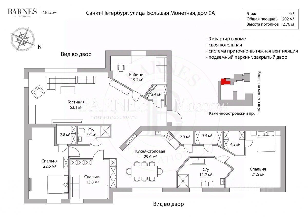 ID: 584303 Представляем вашему вниманию потрясающую квартиру, расположенную в одном из самых престижных районов Санкт-Петербурга — на набережной реки Мойки. Этот район славится своей архитектурной красотой, историческими памятниками и живописными видами, что делает его идеальным местом для жизни. Квартира площадью 267 м² занимает два уровня, что создает уникальную атмосферу пространства и уюта. Парадный вход с набережной. Широкая лестница. Просторные комнаты наполнены светом благодаря большим окнам, из которых открывается захватывающий вид на реку и тихий двор. Лаконичная планировка: 1 уровень занимает кухня, гостиная с окнами на набережную реки Мойки, гостевая спальня смотрит окнами во двор. На 2 уровне расположилась приватная часть квартиры, включающая в себя три спальни. А так же просторная терраса — это ваше личное пространство для отдыха на свежем воздухе, где можно наслаждаться утренним кофе или вечерними закатами. В квартире 4 санузла, что очень комфортно для большой семьи. Эта квартира — не просто жилье, это стиль жизни, который вы заслуживаете. Здесь вы сможете наслаждаться всеми преимуществами городской жизни, не отказываясь от уюта и спокойствия. Не упустите возможность стать владельцем этого эксклюзивного жилья в самом сердце культурной столицы России! Номер объекта: #1/584303/14501