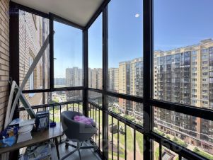 Лоджия длинной 6,8 м., ширина 1, 09 м, утеплена, стены выложены искусственным камнем,установлены сэндвич-панели и пластиковые стеклопакеты, на полу керамогранит, пол с подогревом от электричества, имеется освещение. В кухонной зоне установлена кухня, встроенный духовой шкаф с функцией микроволновой печи(Fornelli), индукционная плита. В комнате имеется мебель: комплект - комод, шкаф, стол, стул. Имеется раскладной диван,установлен кондиционер (сплит-система с наружным блоком на балконе). В ванной комнате имеется ванная, зеркало со шкафом и отдельный шкаф, сантехника в рабочем хорошем состоянии. Двор благоустроен, во дворе детская площадка, аптека., пекарня. В шаговой доступности школа, детский сад, спорткомплекс, строительные магазины (Максидом, Мебель Вуд), гипермаркет (Лента), ТЦ Лондон Мол, до ст. метро проспект Большевиков пешком 20 мин.