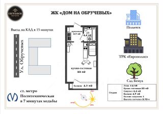 В прямой продаже большая квартира-студия с дизайнерским ремонтом в 7 минутах ходьбы от станции метро Политехническая.ЖК комфорт-класса Дом на Обручевых 2018 года постройки. Два лифта. Круглосуточное видеонаблюдение. Хорошая звукоизоляция. Уютный и тихий двор.Общая площадь квартиры 30,1 м2 + балкон.Удобная и рациональная планировка с элементами зонирования. Практически однокомнатная квартира за счет грамотного зонирования (кухонная зона отделена от жилой, что создает ощущение полноценной квартиры). Кровать расположена в уютной нише — пространство для отдыха, отделенное визуально от гостиной части.Совмещенный санузел с качественной сантехникой.Балкон может быть преобразован, как в уютную зону для отдыха, так и в место для хранения вещей.В квартире выполнен дизайнерский ремонт, продумана каждая деталь для создания функционального пространства. Стильная окраска стен. Ламинат на полу в жилой зоне, а в зоне кухне, прихожей керамогранит, разные сценарии освещения.Есть всё для комфортной жизни. Современный кухонный гарнитур, варочная панель, духовой шкаф, холодильник, микроволновая печь, стиральная машина.Кровать с ящиками для хранения, комод, шкаф.Развитая инфраструктура:Продуктовые магазины, кафе, рестораны, аптеки, салоны красоты, фитнес-клубы — всё в пешей доступности.Рядом находится детский садик 2 и 21, школа 145, а также государственная поликлиника и больница.До ТРЦ Академ-парк и ТОК Академический 20 минут пешком. До ТРК Европолис 15 минут на автобусе.Недалеко парк Политехнического университета, сад Бенуа, Вавиловский сквер.В пешей доступности Санкт-Петербургский политехнический университет Петра Великого, Военная академия связи им. маршала Советского Союза С.М. Буденного, Санкт-Петербургский государственный лесотехнический университет им. С.М. Кирова. Отличная транспортная доступность:Идеальная локация!До станции метро Академическая 15 минут пешком, до станции метро Политехническая 7 минут пешком.Ходит много наземного транспорта.- Автобус 294 идёт до станции метро Старая Деревня.- Автобус 94 идёт до набережной Чёрной речки - Трамвай 9 идёт до станции метро Удельная.До центра города на метро 15 минут (прямая ветка), на машине 25 минут.Отлично подойдет, как для сдачи в аренду, так и постоянной жизни.Прямая продажа. Один взрослый собственник, никто не зарегистрирован. Квартира покупалась у застройщика. Первая продажа. Без обременений. Быстрый выход на сделку.