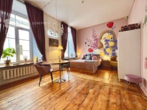 Однокомнатная квартира в историческом центре Санкт-Петербурга на Театральной площади рядом с Мариинским театром.Одна квартира на этаже,чистый подъезд.С дизайнерским ремонтом двухуровневаязаходи и живи.Капремонт в квартире проводился 14 лет назад с заменой окон,пола,проводки,труб водоснабжения,радиаторов отопления, дверей, штукатурка стен.Старый пол был демонтирован до плит перекрытия и уложен новый.Отсыпан керамзитом и проложен утеплителем для тепла.Поднят от первоначального на 20 см.Косметический ремонт- замена обоев производился два года назад.Окна металлопластик с жалюзи от солнца и любопытных глаз.В комнате два огромных окна,а в квартире 4 таких окна 210х170, все выходят во двор,поэтому тихо.В стенах ниши с подсветкой, выключатели света сенсорные.Высота потолков в квартире 4 метра.Лестница на второй этаж,там спальное место.Кровать огромная. Матрас 200х230. Санузел совмещенный. Кафель свежий, голубой, волны моря. Обратите внимание на потолок в санузле: он двухуровневый.Верхний уровень синий, поликарбонат.А второй уровень из оргстекла,прозрачный На него выложены ракушки, камешки, жемчуг и дельфины с маяком. Душевая кабина недавно обновлена, с подсветкой, радио, вентилятором.Мойдодыр итальянский со стеклянным столом, смеситель дизайнерский.Квадратный умывальник- мойдодыр перекликается с квадратным унитазом. Стиральная машина Бош с сушкойдва в одном .В квартире почти вся бытовая техника Бош. Зеркало-шкаф с подсветкой.Санузел просторный, вмещает два больших коврика.Обеденная зона возле кухни в темно синем дизайне, велюровые поворачивающиеся кресла и стеклянный стол.Кухня новая, изготовлена два года назад.Новая техника и каменная мойка. Холодильник в нише.Газовая немецкая варочная панель на закаленном стекле. Вытяжка в тон кухнесерая в стекле.Плательные шкафы в квартире в нишах.Телевизоры смарт,в комнате телевизор с полукруглым экраном. Камин между окнами. Дом расположен у второй сцены Мариинского театра, буквально в трёх метрах, через Минский переулок. Дому более двухсот лет.Стены с метровой кирпичной кладкой. Когда окна устанавливали, то подоконники 1.20 см пришлось специально заказывать в Германии. Дом исторический выявленный памятник доходный дом Кокушкиных. Для квартиры первого этажа очень важен подвал.Когда я покупала эту квартиру, сразу зашла посмотреть не квакает ли? Сухой. Капремонт подвала и коммуникаций город провел четыре года назад. В подъездах аудио светильники, зажигаются от хлопка.На окнах квартиры решетки, двери двойные металлические. Есть предбанник. Квартира теплая, зимой ходим босиком. В доме располагается два тихих кафе, клиника Хеликс, цветочный магазин. В соседнем доме детсад, через дорогу три школы, улица Декабристов славится пекарнями и аптеками, тут их полно. За углом детская поликлиника, пенсионный фонд, Мариинских театров три (первая, вторая сцены и концерный зал), Консерватория и двумя памятниками, Никольский сад, Новая Голландия. Двор закрыт на автоматические ворота. Есть парковочное место.