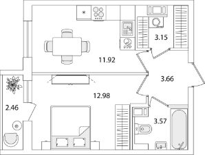 Продается уютная 1-комнатная квартира от застройщика в жилом комплексе ''Бионика Заповедная'' в динамичном Приморском районе.До метро можно добраться на транспорте всего за 11 минут.Удобная, классическая, функциональная европланировка, большая кухня-гостиная 15.46 м², вместительная прихожая 3.78 м². Общая площадь квартиры - 34.61 м², жилая 11.2 м², высота потолка 2.77 м.Квартира продается с отделкой ''NORD LINE SILVER ВК NEW''.Что особенного в ЖК ''Бионика Заповедная''?• Оазис в городе 3 минуты пешком до Новоорловского заказника (140 ГА)• Захватывающие виды из окон на хвойный лесопарк• Всесезонный ''Заповедный парк'' во дворе площадью 23000 кв.м.• 5 единых входных групп с авторским дизайном и лаундж-зонами, сити-виллы на первых этажах с палисадниками и высотой потолков до 4 м• Места притяжения: фонтан ''Бионика'', спортивный кластер со скейт-парком, фотозоны с арт-объектами