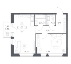 В продаже 1-комнатная квартира в корпусе 35.2 ЖК 'Новое Колпино'. Квартира располагается на 9 этаже, общая площадь 46.99 м2.