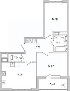 Продается уютная 2-комнатная квартира от застройщика в жилом комплексе ''Бионика Заповедная'' в динамичном Приморском районе.До метро можно добраться на транспорте всего за 11 минут.Удобная, классическая, функциональная европланировка, большая кухня-гостиная 16.55 м², вместительная прихожая 7.4 м². Общая площадь квартиры - 54.5 м², жилая 23 м², высота потолка 2.77 м.Квартира продается с отделкой ''NORD LINE SILVER ВК NEW''.Что особенного в ЖК ''Бионика Заповедная''?• Оазис в городе 3 минуты пешком до Новоорловского заказника (140 ГА)• Захватывающие виды из окон на хвойный лесопарк• Всесезонный ''Заповедный парк'' во дворе площадью 23000 кв.м.• 5 единых входных групп с авторским дизайном и лаундж-зонами, сити-виллы на первых этажах с палисадниками и высотой потолков до 4 м• Места притяжения: фонтан ''Бионика'', спортивный кластер со скейт-парком, фотозоны с арт-объектами