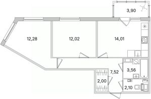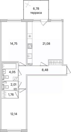 2-к квартира Показать на карте