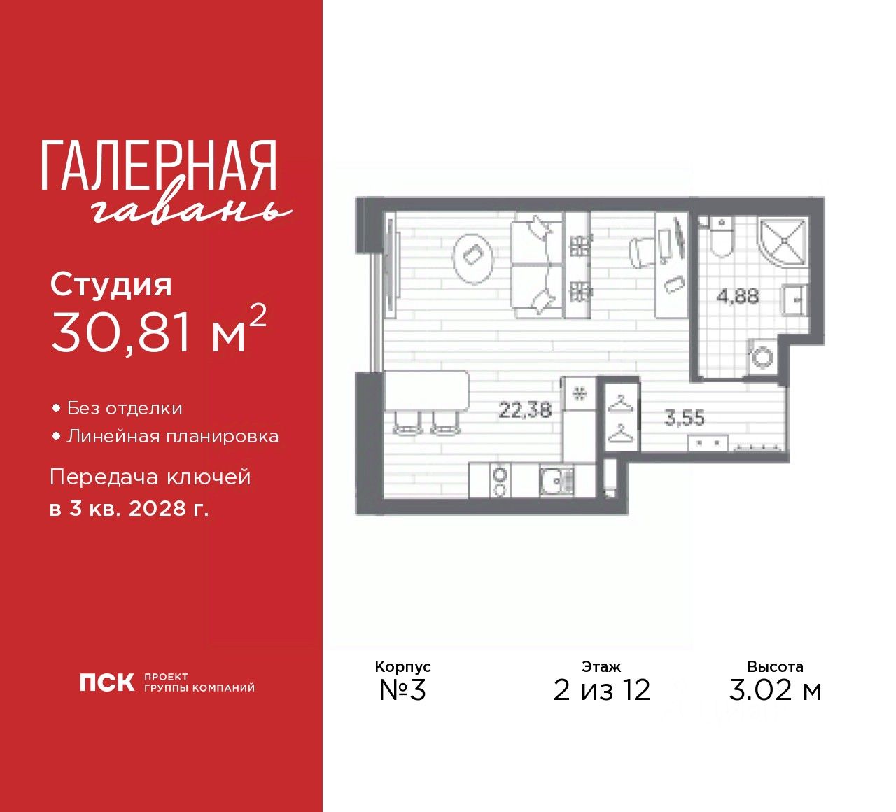 Старт продаж нового ЖК на Васильевском! Информация по телефону, наши менеджеры вам все расскажут! Четырехкомнатная квартира в ЖК ''Галерная гавань'' на 2 этаже. Квартира без отделки, после оформления собственности можно делать ремонт. Общая площадь: 101.87 кв.м., жилая: 61.54 кв.м., площадь просторной кухни-столовой: 19.29 кв.м. Угловая квартира, идеально подойдет любителям тишины и панорамных видов. В квартире два совмещенных санузла. Высота потолков 3.02 м. ''Галерная гавань'' — это жилой комплекс бизнес-класса в исторической части Васильевского острова — на берегу Галерной гавани, ведущей свою историю с 1724 года. В свою очередь, исторический Васильевский остров это университеты, школы, детские сады, поликлиники, несколько станций метро и прочая инфраструктура без проблем с транспортной доступностью. В ''Галерной гавани'' шесть корпусов на 813 квартир, площадью от 29,5 до 134 кв.м. Высота потолков 3 м. Два корпуса из шести всего на 20 квартир. На верхних этажах расположатся квартиры с большими террасами и панорамным остеклением. Также есть квартиры с французскими балконами и мастер-спальнями. Четыре квартиры из каждых пяти с видами из окон на тихую воду, на старые и новые городские символы. Паркинг займет весь подземный объем квартала, и будет вмещать 606 автомобилей. Фасады ''Галерной гавани'' выполняются в стиле баварской кирпичной кладки, с акцентами из керамогранита графитового оттенка. Объемы задаются ризалитами с художественной подсветкой. Для жителей будет создан комьюнити-клуб с переговорной и библиотекой, кинозалом, кофе-поинтом, детской комнатой с пространством для мастер-классов, фитнес-зоной, а также бьюти-кабинетом. ''Галерная гавань'' — это также первый в Петербурге жилой комплекс с общественным пространством у воды. ГК ''ПСК'' восстановит десять исторических зданий, в которых расположатся рестораны, кафе, фитнес-клуб с бассейном, культурное пространство, театр и офисы. При этом набережная будет превращена в пешеходную, в территорию общественного пространства. #zMgcVA