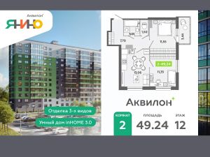 Купи квартиру в ЖК ''Аквилон ЯНИНО''!ОтделкаВ квартире выполнена предчистовая отделка WhiteBox+Возможен дозаказ отделки в любом из 3 цветов: SAND, TERRA, GRAPHITEОтделка входит в стоимость квартиры в ДДУЖК ''Аквилон ЯНИНО''Жилой комплекс комфорт-класса ''Аквилон ЯНИНО'' находится в одной из самых перспективных локаций, в непосредственной близости от Санкт-Петербурга. Объект находится ближе всех в округе к выезду на КАД. 2 корпуса средней этажности Группы Аквилон отвечают самым современным требованиям: безопасность, технологичность, лаконичность, практичность и качество. Комплекс ''Аквилон ЯНИНО'' предлагает полноценную внутреннюю структуру для создания комфортной жизни и решения любых повседневных задач.- Спортивный комплекс для всей семьи в 5 минутах ходьбы от жилого комплекса- Самый близкий выезд на КАД и строительство метро в пешей доступности- Благоустройство, зоны отдыха для детей и взрослых- Закрытый дворСтандарты Группы Аквилон для вашей комфортной жизниThermo-S экономия на коммунальных платежах за счет дополнительно утепленных стен, кровли и цоколя. Энергоэффективные окна с селективным покрытием и аргоновым заполнением Light-in - в квартирах устанавливаются широкоформатные окна, увеличены на 30%. Высота подоконников на уровне 60 см от пола. Vent-in - в каждой комнате есть клапаны индивидуальной вентиляции, которые обеспечивают приток свежего воздуха с улицы.inHOME умный дом в каждой квартиреИнтеллектуальная цифровая система, которая позволит дистанционно решать бытовые вопросы, управлять квартирой и экономить на оплате коммунальных услуг.В состав inHOME входят: IP-домофон, Face key, ''умные'' счетчики, датчики протечки, дистанционное отключение розеток, и т.д.Двор ваш личный паркМы позаботились о безопасности вас и вашей семьи территория жилого комплекса ''Аквилон ЯНИНО'' полностью закрыта. Предусмотрены системы контроля и управления доступом. Для вашего удобства по всему периметру расположены калитки, специальные ворота для проезда транспорта и освещение. Для ваших детей мы разработали проекты детских площадок. Они формируют особую среду, где можно проводить много времени на свежем воздухе. Разнообразные игровые формы помогают детям проявлять творческий потенциал, развиваться, общаться со сверстниками, получать новые социальные навыки, укреплять здоровье и заниматься спортом. Локация и инфраструктура- 15 минут до станции метро ''Ладожская''- 300 метров до остановки общественного транспорта- 5 минут до выезда на Колтушское шоссе- 800 метровдо выезда на КАД #zSaDTE