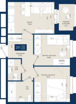 Продаётся 2-комнатная квартира в строящемся доме (Дом 6), срок сдачи: I-кв. 2028, общей площадью 46.97 кв.м., на 3 этаже. Новый клубный дом ''Аксиома.Возрождение'' от застройщика ''Аксиома'' расположен по адресу: г. Кировск, ул. Красных Сосен, 6