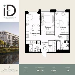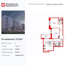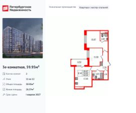 Продаётся 2-комн. квартира площадью 56,7 кв.м на 2 этаже 12 этажного дома (Корпус 2, Секция 1) проекта ПИК Шкиперский 19. Светлый просторный подъезд на уровне земли, функциональная планировка, большие окна, без отделки. Жилой квартал возводится на Васильевском острове, в пешей доступности от станции метро ''Приморская'' и с удобным выездом на ЗСД. Здесь будут квартиры с высокими потолками, окнами в пол и великолепным видом на Финский залив. Жилой квартал ''Шкиперский 19'' возводится в историческом районе Санкт-Петербурга - на Васильевском острове. Здания высотой от 8 до 12 этажей выполнены в природных оттенках, поэтому гармонично вписываются в архитектурный ландшафт Васильевского острова. На первых этажах домов откроются магазины, кафе и полезные сервисы: чтобы сходить за свежей выпечкой к завтраку, можно будет просто спуститься на лифте. Для детей из ''Шкиперского 19'' на территории квартала откроются школа и детский сад.Парадный вход ''Шкиперского 19'' - просторное и светлое гранд-лобби в стиле джапанди. В нём будут сочетаться элементы японских и скандинавских традиций дизайна. Помимо зоны ожидания с мягкой мебелью, здесь будет детская комната и гостевой санузел.В парадных предусмотрены комнаты для колясок и лапомойки для собак, тихие и быстрые лифты. Автомобиль можно будет оставить в подземном паркинге, а крупные и сезонные вещи - в индивидуальной кладовой.Доехать от квартала до Невского проспекта можно за 15 минут, до ЗСД - за 12 минут. В 20 минутах ходьбы находится станция метро ''Приморская'', и в 2030 году планируется открытие станции ''Гавань'' в 5 минутах от проекта.Проект принадлежит ''Серии плюс''. В ''Серию плюс'' входят жилые кварталы с повышенным уровнем комфорта и уникальной архитектурой. В светлых уютных лобби с дизайнерской отделкой предусмотрены колясочная и гостевой санузел. Артикул 976972 (Застройщик ООО ''СЗ ''Москворецкий дом'') [cn_sbp_1847655]
