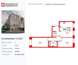 Просторная двухкомнатная квартира в Клубный квартал ''Ассамблея'' на 6 этаже. Квартира без отделки, полностью готова к ремонту. Общая площадь: 70.19 кв.м., жилая: 28.32 кв.м., площадь просторной кухни-столовой: 16.01 кв.м. Квартира - распашонка, без проходных комнат, окна выходят на paзные стороны дома. В квартире одна лоджия, два совмещенных и один раздельный санузел. Высота потолков 3.0 м. Дом монолитный, трехподъездный, высотой 12 этажей. Квартира находится во 2-й секции в корпусе 4. На этаже 7 квартир. В подъезде 1 пассажирский и 1 грузовой лифт. Начало строительства - 3 квартал 2025 года. Окончание строительства - 3 квартал 2028 года. Оформление сделки по договору долевого участия. В шаговой доступности от жилого комплекса находятся станции метро (расстояние по прямой): ''Горный институт'' (1.0 км), ''Василеостровская'' (1.4 км), ''Приморская'' (1.5 км), также недалеко от этого корпуса расположены станции метро: ''Спортивная'', ''Чкаловская''. ''Клубный квартал Ассамблея'' — проект бизнес-класса на Васильевском острове, в самом сердце исторического Петербурга. Комплекс состоит из пяти корпусов переменной этажности — от 7 до 12 этажей — с выразительной архитектурой в стиле неомодернизма: светлый клинкер, панорамное остекление, просторное лобби с потолками высотой почти 8 метров. Потолки — до 3,2 метров. Подземный паркинг на 667 машиномест. Комфорт и инфраструктура Проект ориентирован на комфортную городскую жизнь. В закрытом дворе — ландшафтное озеленение, современные детские и спортивные площадки. Внутренний клуб для резидентов включает коворкинг, переговорные, кинозал, фитнес и бьюти-зону. IP-домофония с просмотром камер видеонаблюдения, дистанционное открывание дверей и доступа на территорию и в парадную со смартфона и планшета, просмотр показаний счетчиков, приложение для жителей PSK Home. Локация Расположение на Васильевском острове — сильная сторона проекта. До четырех станций метро (''Горный институт'', ''Василеостровская'', ''Спортивная'', ''Приморская'') — 515 минут пешком. В шаговой доступности — зелёные зоны, культурные учреждения, в том числе сад ''Василеостровец'' и ДК имени Кирова. Основные магистрали Большой, Средний и Малый проспекты, Наличная и Уральская улицы. Съезд на ЗСД расположен недалеко от станции метро ''Приморская'', близ береговой линии. Благовещенский и Дворцовый мосты соединяют остров с центром города, а мосты Тучков, Биржевой и Бетанкура — с Петроградской стороной. Застройщик Группа компаний ПСК является одной из ведущих девелоперских компаний Санкт Петербурга. На протяжении 18 лет она возводит в Северной столице качественное жилье премиум, бизнес и комфорт-класса, социальные объекты школы и детские сады, апарт-отели и торговые центры. Является шестикратным обладателем золотого знака ''Надежный застройщик России''. #zMbgz5