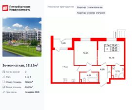 Продается уютная 2-комнатная квартира от застройщика в жилом комплексе ''Парадный ансамбль'' в престижном Московском районе.До метро можно добраться на транспорте всего за 20 минут.Мастер-спальня с собственной ванной комнатой. Самое приватное пространство в вашей квартире.Уникальная, функциональная европланировка, большая кухня-гостиная 17.51 м², вместительная прихожая 6.9 м². Общая площадь квартиры - 58.23 м², жилая 26.43 м², высота потолка 2.77 м.Квартира продается с отделкой ''NORD LINE WHITE''.Что особенного в ЖК ''Парадный ансамбль''?• Инновационный Лицей Setl с оригинальной архитектурной концепцией и уникальной образовательной средой• Масштабное малоэтажное строительство в престижном Московском районе• Рекреационные зоны: парадный парк в центре квартала, ручей с собственной набережной, центральная площадь, ресторанный комплекс и пешеходный бульвар• Фасады из керамогранита и кирпича с яркими и акцентными входными группами• Две самые большие площадки Setl Kids и Setl Sport• Уникальные квартиры.High Flat на последних этажах, палисадники у квартир на первом этаже, семейные секции, квартиры с саунами и окном в ванной