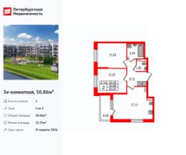 Продается уютная 2-комнатная квартира от застройщика в жилом комплексе ''Парадный ансамбль'' в престижном Московском районе.До метро можно добраться на транспорте всего за 20 минут.Удобная, классическая, функциональная европланировка, большая кухня-гостиная 17.11 м², вместительная прихожая 6.13 м². Общая площадь квартиры - 50.86 м², жилая 22.32 м², высота потолка 3.07 м.Квартира продается с отделкой ''NORD LINE WHITE''.Что особенного в ЖК ''Парадный ансамбль''?• Инновационный Лицей Setl с оригинальной архитектурной концепцией и уникальной образовательной средой• Масштабное малоэтажное строительство в престижном Московском районе• Рекреационные зоны: парадный парк в центре квартала, ручей с собственной набережной, центральная площадь, ресторанный комплекс и пешеходный бульвар• Фасады из керамогранита и кирпича с яркими и акцентными входными группами• Две самые большие площадки Setl Kids и Setl Sport• Уникальные квартиры.High Flat на последних этажах, палисадники у квартир на первом этаже, семейные секции, квартиры с саунами и окном в ванной