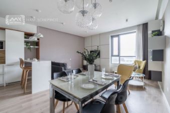 Стильные апартаменты - евро-трехкомнатная квартира общей площадью 83 кв. м - расположены на приватной охраняемой территории жилого комплекса ''Лахта Парк'' площадью 17 га, с прямым выходом к Юнтоловскому заказнику и озеру Лахтинский разлив.Интерьер воплощён по дизайн-проекту, основой которого является сочетание благородных оттенков и природных материалов с технологичным наполнением.Просторная кухня-гостиная, две спальни, отдельный санузел и ванная комната, входная группа с шпонированной мебелью, выполненной на заказ.Полы в квартире — шведский паркет, в мокрых зонах — тёплые полы из итальянского керамогранита.Светлая кухня с современными фасадами и столешницей из экологичного и износостойкого кварцевого агломерата порадует хозяйку исключительной устойчивостью к внешним воздействиям.Вся техника кухни — баварского производителя Siemens, известного своей надёжностью и простотой в управлении.Мебель выполнена на заказ и встроена идеально. Благодаря большому количеству окон в пол дневной свет в квартире присутствует в изобилии.В пешей доступности находится оздоровительный SPA-центр Green Flow площадью 3 200 кв. м с минеральными бассейнами, соляными пещерами, фитнес-клубом, гастробаром, детской игровой комнатой и конференц-залом для важных встреч.Внутри комплекса, а также по его периметру, оборудованы широкие пешеходные и велодорожки, есть прямой доступ в парковую зону и к озеру — идеальное место для прогулок и отдыха. Большое внимание уделено самым важным пользователям — юным жителям, для них предусмотрены несколько детских городков и игровых площадок.Социальная инфраструктура включает детские сады, центры для малышей, школы и городские поликлиники, расположенные в 10 минутах ходьбы. Рядом также находятся торгово-развлекательные центры ''Меркурий'', ''Гулливер'' и ''Питерлэнд''.Большим преимуществом является близость к инфраструктуре Курортного района: Финский залив с уютными ресторанами, экологические пешеходные тропы, озёра Ленинградской области с заказниками.Идеальное сочетание - квартира городского формата в окружении зелёного оазиса с отличной транспортной доступностью в любую точку города.