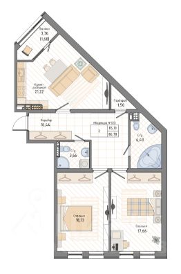 Двухкомнатная квартира в Клубный квартал ''Ассамблея'' на 2 этаже. Квартира без отделки, после оформления собственности можно делать ремонт. Общая площадь: 61.43 кв.м., жилая: 29.63 кв.м., площадь просторной кухни-столовой: 15.6 кв.м. Комнаты изолированные, все окна выходят на одну сторону. В квартире одна лоджия, один совмещенный и один раздельный санузел. Высота потолков 3.0 м. Дом монолитный, трехподъездный, высотой 12 этажей. Квартира находится в 3-й секции в корпусе 4. На этаже 9 квартир. В подъезде 1 пассажирский и 1 грузовой лифт. Начало строительства - 3 квартал 2025 года. Окончание строительства - 3 квартал 2028 года. Оформление сделки по договору долевого участия. В шаговой доступности от жилого комплекса находятся станции метро (расстояние по прямой): ''Горный институт'' (1.0 км), ''Василеостровская'' (1.4 км), ''Приморская'' (1.5 км), также недалеко от этого корпуса расположены станции метро: ''Спортивная'', ''Чкаловская''. ''Клубный квартал Ассамблея'' — проект бизнес-класса на Васильевском острове, в самом сердце исторического Петербурга. Комплекс состоит из пяти корпусов переменной этажности — от 7 до 12 этажей — с выразительной архитектурой в стиле неомодернизма: светлый клинкер, панорамное остекление, просторное лобби с потолками высотой почти 8 метров. Потолки — до 3,2 метров. Подземный паркинг на 667 машиномест. Комфорт и инфраструктура Проект ориентирован на комфортную городскую жизнь. В закрытом дворе — ландшафтное озеленение, современные детские и спортивные площадки. Внутренний клуб для резидентов включает коворкинг, переговорные, кинозал, фитнес и бьюти-зону. IP-домофония с просмотром камер видеонаблюдения, дистанционное открывание дверей и доступа на территорию и в парадную со смартфона и планшета, просмотр показаний счетчиков, приложение для жителей PSK Home. Локация Расположение на Васильевском острове — сильная сторона проекта. До четырех станций метро (''Горный институт'', ''Василеостровская'', ''Спортивная'', ''Приморская'') — 515 минут пешком. В шаговой доступности — зелёные зоны, культурные учреждения, в том числе сад ''Василеостровец'' и ДК имени Кирова. Основные магистрали Большой, Средний и Малый проспекты, Наличная и Уральская улицы. Съезд на ЗСД расположен недалеко от станции метро ''Приморская'', близ береговой линии. Благовещенский и Дворцовый мосты соединяют остров с центром города, а мосты Тучков, Биржевой и Бетанкура — с Петроградской стороной. Застройщик Группа компаний ПСК является одной из ведущих девелоперских компаний Санкт Петербурга. На протяжении 18 лет она возводит в Северной столице качественное жилье премиум, бизнес и комфорт-класса, социальные объекты школы и детские сады, апарт-отели и торговые центры. Является шестикратным обладателем золотого знака ''Надежный застройщик России''. #z6ic2F