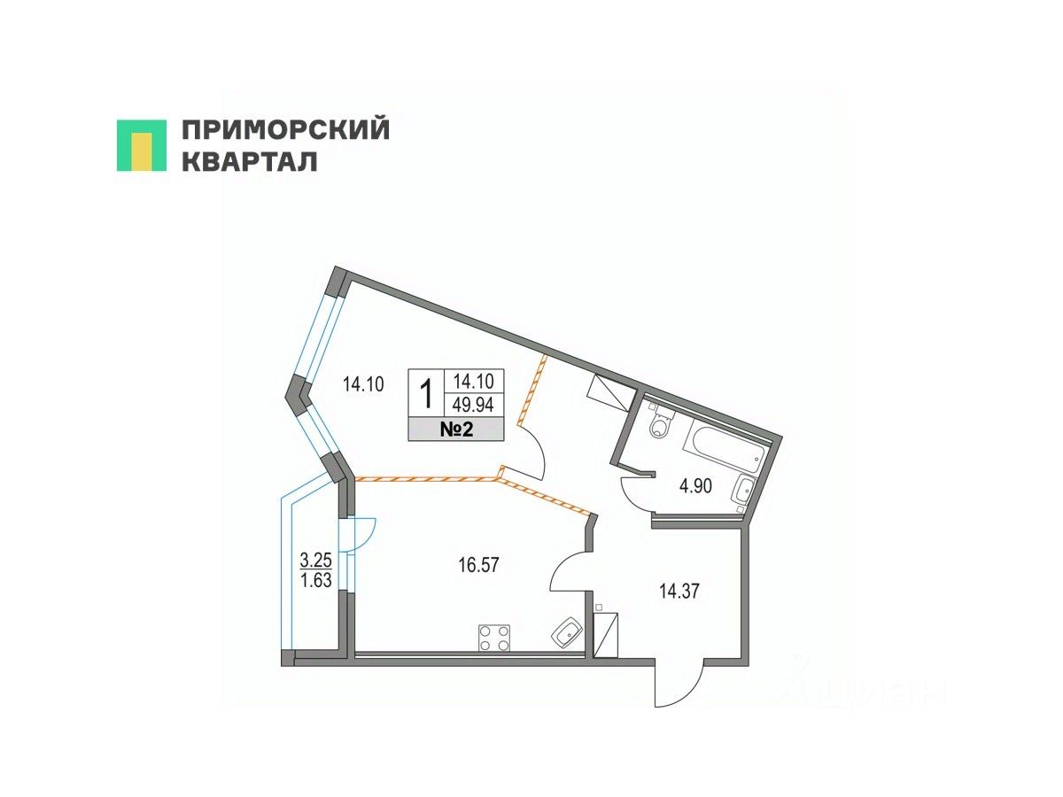 Продается 1 - комнатная квартира общей площадью 49.94 кв.м., на 2 этаже в построенном и заселенном корпусе 42 (год сдачи: 2024 г.) Квартиры в ЖК ''Приморский квартал'' продаются напрямую от застройщика ''Мегалит - Охта Групп'' по договору купли-продажи. Приморский квартал - проект современной квартальной застройки комфорт-класса в 400 метрах от станции метро ''Пионерская''. Квартал включает 13 жилых домов, высотность которых варьируется от 12 до 25 этажей, а также различные объекты социальной инфраструктуры. Проект реализуется двумя партнерами инвестиционно-строительными компаниями ''Мегалит'' и ''Охта Групп''. В состав квартала войдут три детских сада на 460 мест и общеобразовательная школа на 1500 мест. Проектом предусмотрено большое количество коммерческих помещений для размещения всего, что нужно для комфортной городской жизни - магазины, аптеки, кафе, салоны красоты и другое. Приморский квартал расположен в Приморском районе, на территории, ограниченной Коломяжским проспектом, проспектом Испытателей, Богатырским проспектом и улицей Матроса Железняка.