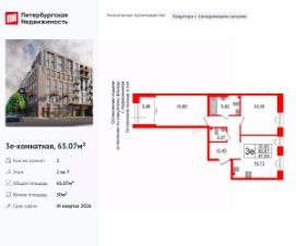 Просторная двухкомнатная квартира в Клубный квартал ''Ассамблея'' на 2 этаже. Квартира без отделки, новый собственник может сделать ремонт по индивидуальному дизайн-проекту. Общая площадь: 61.43 кв.м., жилая: 29.63 кв.м., площадь просторной кухни-столовой: 15.6 кв.м. Комнаты изолированные, все окна выходят на одну сторону. В квартире одна лоджия, один совмещенный и один раздельный санузел. Высота потолков 3.0 м. Дом монолитный, трехподъездный, высотой 12 этажей. Квартира находится в 3-й секции в корпусе 4. На этаже 9 квартир. В подъезде 1 пассажирский и 1 грузовой лифт. Начало строительства - 3 квартал 2025 года. Окончание строительства - 3 квартал 2028 года. Оформление сделки по договору долевого участия. В шаговой доступности от жилого комплекса имеются станции метро (расстояние по прямой): ''Горный институт'' (1.0 км), ''Василеостровская'' (1.4 км), ''Приморская'' (1.5 км), также недалеко от этого корпуса расположены станции метро: ''Спортивная'', ''Чкаловская''. ''Клубный квартал Ассамблея'' — проект бизнес-класса на Васильевском острове, в самом сердце исторического Петербурга. Комплекс состоит из пяти корпусов переменной этажности — от 7 до 12 этажей — с выразительной архитектурой в стиле неомодернизма: светлый клинкер, панорамное остекление, просторное лобби с потолками высотой почти 8 метров. Потолки — до 3,2 метров. Подземный паркинг на 667 машиномест. Комфорт и инфраструктура Проект ориентирован на комфортную городскую жизнь. В закрытом дворе — ландшафтное озеленение, современные детские и спортивные площадки. Внутренний клуб для резидентов включает коворкинг, переговорные, кинозал, фитнес и бьюти-зону. IP-домофония с просмотром камер видеонаблюдения, дистанционное открывание дверей и доступа на территорию и в парадную со смартфона и планшета, просмотр показаний счетчиков, приложение для жителей PSK Home. Локация Расположение на Васильевском острове — сильная сторона проекта. До четырех станций метро (''Горный институт'', ''Василеостровская'', ''Спортивная'', ''Приморская'') — 515 минут пешком. В шаговой доступности — зелёные зоны, культурные учреждения, в том числе сад ''Василеостровец'' и ДК имени Кирова. Основные магистрали Большой, Средний и Малый проспекты, Наличная и Уральская улицы. Съезд на ЗСД расположен недалеко от станции метро ''Приморская'', близ береговой линии. Благовещенский и Дворцовый мосты соединяют остров с центром города, а мосты Тучков, Биржевой и Бетанкура — с Петроградской стороной. Застройщик Группа компаний ПСК является одной из ведущих девелоперских компаний Санкт Петербурга. На протяжении 18 лет она возводит в Северной столице качественное жилье премиум, бизнес и комфорт-класса, социальные объекты школы и детские сады, апарт-отели и торговые центры. Является шестикратным обладателем золотого знака ''Надежный застройщик России''. #zMlC2F