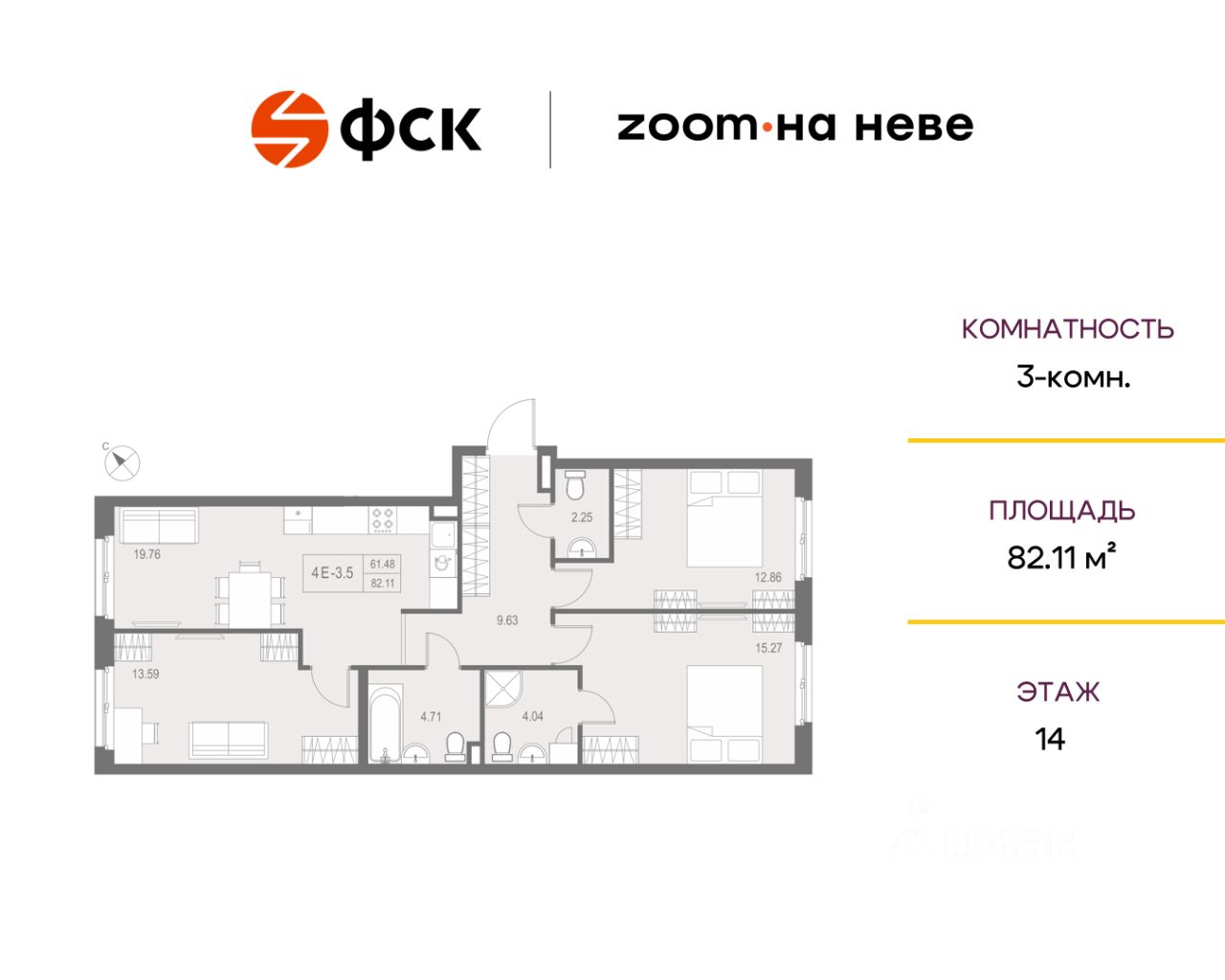 Цена со скидкой до 30% в прямой продаже от застройщика — только в этом месяце. При покупке апартаментов - паркинг за полцены. На все апартаменты действует беспроцентная рассрочка. Купите на распродаже! Покупка недвижимости в Zoom на Неве сейчас со скидкой до 30% позволит через 2 года получить доход до 6 300 000 руб. Роскошные виды на Неву. 3-к апартамент в комплексе класса бизнес-лайт Zoom на Неве на 14-м этаже. Общая площадь 82,11. Чистовая отделка. Zoom на Неве расположен в новом месте силы рядом с центром города на первой линии Октябрьской набережной в Невском районе, всего в 7 км от исторической части Санкт-Петербурга. Большой выбор эргономичных и максимально продуманных планировок позволит каждому найти вариант по душе. Панорамные виды на Неву, благоустроенные дворы, детская игровая комната, подземный паркинг, коммерческие зоны на первом этаже, это и многое другое делает Zoom на Неве идеальным местом для жизни. Особенности: - Панорамные виды на Неву и город, - 10 мин. до Парка Строителей, 15 мин. до Лондон-молла, Ленты, Максидома, 15 мин. до метро ''ул. Дыбенко'', 12 мин. до КАД, 10 мин. до центра, - Единая архитектурная концепция. Сдержанные и монументальные фасады в неоклассическом стиле, - Парадный лобби для жильцов. Единый вход в комплекс с администратором, зоной ресепшн и охраной, зоной для бесконтактной доставки посылок и еды, - Подземный отапливаемый паркинг с доступом из парадной, - Доступно 3 варианта отделки на выбор: черновая, предчистовая (White Box) и чистовая, - Зоны отдыха для взрослых и детей, Wi-Fi-покрытие во дворе и в паркинге, зоны для питомцев, арт-объекты и много другое. В шаговой доступности вся необходимая инфраструктура от детских садов и школ до супермаркетов и салонов красоты, - Все происходящее контролируется видеокамерами, а покой внутренней территории и безопасность ваших детей гарантируется полным отсутствием транспорта во дворах в концепции ''без машин''.