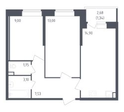 В продаже 2-комнатная квартира в корпусе 6-7 ЖК 'Живи! В Рыбацком'. Квартира располагается на 13 этаже, общая площадь 55.69 м2.