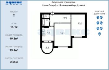 2-к, Богатырский проспект, 57 корп. 1 Показать на карте