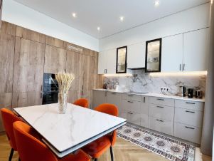 Стильные апартаменты - евро-трехкомнатная квартира общей площадью 83 кв. м - расположены на приватной охраняемой территории жилого комплекса ''Лахта Парк'' площадью 17 га, с прямым выходом к Юнтоловскому заказнику и озеру Лахтинский разлив.Интерьер воплощён по дизайн-проекту, основой которого является сочетание благородных оттенков и природных материалов с технологичным наполнением.Просторная кухня-гостиная, две спальни, отдельный санузел и ванная комната, входная группа с шпонированной мебелью, выполненной на заказ.Полы в квартире — шведский паркет, в мокрых зонах — тёплые полы из итальянского керамогранита.Светлая кухня с современными фасадами и столешницей из экологичного и износостойкого кварцевого агломерата порадует хозяйку исключительной устойчивостью к внешним воздействиям.Вся техника кухни — баварского производителя Siemens, известного своей надёжностью и простотой в управлении.Мебель выполнена на заказ и встроена идеально. Благодаря большому количеству окон в пол дневной свет в квартире присутствует в изобилии.В пешей доступности находится оздоровительный SPA-центр Green Flow площадью 3 200 кв. м с минеральными бассейнами, соляными пещерами, фитнес-клубом, гастробаром, детской игровой комнатой и конференц-залом для важных встреч.Внутри комплекса, а также по его периметру, оборудованы широкие пешеходные и велодорожки, есть прямой доступ в парковую зону и к озеру — идеальное место для прогулок и отдыха. Большое внимание уделено самым важным пользователям — юным жителям, для них предусмотрены несколько детских городков и игровых площадок.Социальная инфраструктура включает детские сады, центры для малышей, школы и городские поликлиники, расположенные в 10 минутах ходьбы. Рядом также находятся торгово-развлекательные центры ''Меркурий'', ''Гулливер'' и ''Питерлэнд''.Большим преимуществом является близость к инфраструктуре Курортного района: Финский залив с уютными ресторанами, экологические пешеходные тропы, озёра Ленинградской области с заказниками.Идеальное сочетание - квартира городского формата в окружении зелёного оазиса с отличной транспортной доступностью в любую точку города.