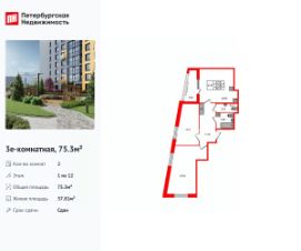 Продается просторная 2-комнатная квартира от застройщика в жилом комплексе ''Прайм Приморский'' в динамичном Приморском районе.До метро можно добраться на транспорте всего за 15 минут.Удобная, классическая, функциональная европланировка, большая кухня-гостиная 20.85 м², просторная прихожая 11.48 м². Общая площадь квартиры - 75.3 м², жилая 37.81 м², высота потолка 2.77 м.Квартира продается с отделкой ''NORD LINE WHITE ВК''.Что особенного в ЖК ''Прайм Приморский''?• Живописные виды на Шуваловский карьер и лесной массив• ''Парящие'' французские балконы• Центральная входная группа• Креативное пространство в центре проекта, летняя терраса для отдыха• Приватные лаундж-зоны на крыше домов (3 корпус)