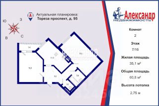 2-к, Тореза проспект, 95 Показать на карте