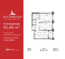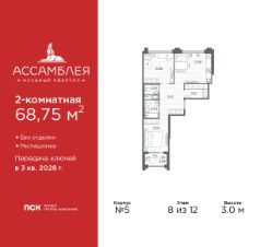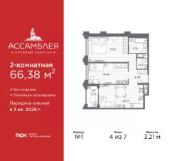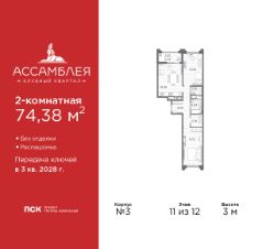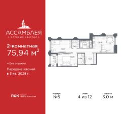 Продается 2-комн. квартира от застройщика в Клубный квартал ''Ассамблея'' на 4 этаже. Квартира без отделки, после оформления собственности можно делать ремонт. Общая площадь: 75.94 кв.м., жилая: 29.72 кв.м., площадь просторной кухни-столовой: 20.41 кв.м. Квартира без проходных комнат, окна выходят нa три cтopoны дома. В квартире одна лоджия, два совмещенных санузла. Высота потолков 3.0 м. Дом монолитный, черырехподъездный, высотой 12 этажей. Квартира находится во 2-й секции в корпусе 5. На этаже 8 квартир. В подъезде 1 пассажирский и 1 грузовой лифт. Окончание строительства - 3 квартал 2028 года. Оформление сделки по договору долевого участия. В шаговой доступности от жилого комплекса расположены станции метро (расстояние по прямой): ''Горный институт'' (1.0 км), ''Василеостровская'' (1.4 км), ''Приморская'' (1.5 км), также недалеко от этого корпуса находятся станции метро: ''Спортивная'', ''Чкаловская''. ''Клубный квартал Ассамблея'' — проект бизнес-класса на Васильевском острове, в самом сердце исторического Петербурга. Комплекс состоит из пяти корпусов переменной этажности — от 7 до 12 этажей — с выразительной архитектурой в стиле неомодернизма: светлый клинкер, панорамное остекление, просторное лобби с потолками высотой почти 8 метров. Потолки — до 3,2 метров. Подземный паркинг на 667 машиномест. Комфорт и инфраструктура Проект ориентирован на комфортную городскую жизнь. В закрытом дворе — ландшафтное озеленение, современные детские и спортивные площадки. Внутренний клуб для резидентов включает коворкинг, переговорные, кинозал, фитнес и бьюти-зону. IP-домофония с просмотром камер видеонаблюдения, дистанционное открывание дверей и доступа на территорию и в парадную со смартфона и планшета, просмотр показаний счетчиков, приложение для жителей PSK Home. Локация Расположение на Васильевском острове — сильная сторона проекта. До четырех станций метро (''Горный институт'', ''Василеостровская'', ''Спортивная'', ''Приморская'') — 515 минут пешком. В шаговой доступности — зелёные зоны, культурные учреждения, в том числе сад ''Василеостровец'' и ДК имени Кирова. Основные магистрали Большой, Средний и Малый проспекты, Наличная и Уральская улицы. Съезд на ЗСД расположен недалеко от станции метро ''Приморская'', близ береговой линии. Благовещенский и Дворцовый мосты соединяют остров с центром города, а мосты Тучков, Биржевой и Бетанкура — с Петроградской стороной. Застройщик Группа компаний ПСК является одной из ведущих девелоперских компаний Санкт Петербурга. На протяжении 18 лет она возводит в Северной столице качественное жилье премиум, бизнес и комфорт-класса, социальные объекты школы и детские сады, апарт-отели и торговые центры. Является шестикратным обладателем золотого знака ''Надежный застройщик России''. #zmb9gC