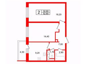 2-к, Приморский проспект, 52 корп. 1 Показать на карте