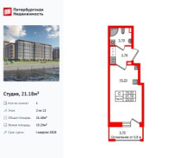 Продается уютная студия от застройщика в жилом комплексе ''Setl Ривьера'' в активно развивающимся Невском районе.До метро можно добраться на транспорте всего за 10 минут.Удобная, классическая, функциональная европланировка, вместительная прихожая 2.76 м². Общая площадь студии - 21.18 м², жилая 15.23 м², высота потолка 2.77 м.Квартира продается с отделкой ''Норд Лайн серый плюс''.Что особенного в ЖК ''Setl Ривьера''?• Первая береговая линия Невы. 5 км до центра Петербурга• ''Активити парк'' - пространство для занятий спортом и отдыха. ''Ривьера парк'' с променадом и панорамной ротондой• Масштабные дворы 10 000 кв.м. с авторским ландшафтным дизайном• Двухуровневые единые входные группы• Видовые квартиры с террасами, каминами и саунами