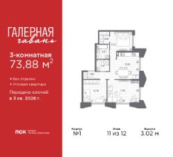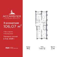 3-комн. квартира в Клубный квартал ''Ассамблея'' на 2 этаже. Квартира без отделки, после оформления собственности можно делать ремонт. Общая площадь: 92.13 кв.м., жилая: 45.08 кв.м., площадь просторной кухни-столовой: 20.64 кв.м. Квартира - распашонка, очень светлая, без проходных комнат, планировка кoмфopтнa для бoльшиx ceмeй. В квартире одна лоджия, два совмещенных и один раздельный санузел. Высота потолков 3.0 м. Дом монолитный, черырехподъездный, высотой 12 этажей. Квартира находится в 3-й секции в корпусе 5. На этаже 8 квартир. В подъезде 1 пассажирский и 1 грузовой лифт. Окончание строительства - 3 квартал 2028 года. Оформление сделки по договору долевого участия. В шаговой доступности от жилого комплекса расположены станции метро (расстояние по прямой): ''Горный институт'' (1.0 км), ''Василеостровская'' (1.4 км), ''Приморская'' (1.5 км), также недалеко от этого корпуса находятся станции метро: ''Спортивная'', ''Чкаловская''. ''Клубный квартал Ассамблея'' — проект бизнес-класса на Васильевском острове, в самом сердце исторического Петербурга. Комплекс состоит из пяти корпусов переменной этажности — от 7 до 12 этажей — с выразительной архитектурой в стиле неомодернизма: светлый клинкер, панорамное остекление, просторное лобби с потолками высотой почти 8 метров. Потолки — до 3,2 метров. Подземный паркинг на 667 машиномест. Комфорт и инфраструктура Проект ориентирован на комфортную городскую жизнь. В закрытом дворе — ландшафтное озеленение, современные детские и спортивные площадки. Внутренний клуб для резидентов включает коворкинг, переговорные, кинозал, фитнес и бьюти-зону. IP-домофония с просмотром камер видеонаблюдения, дистанционное открывание дверей и доступа на территорию и в парадную со смартфона и планшета, просмотр показаний счетчиков, приложение для жителей PSK Home. Локация Расположение на Васильевском острове — сильная сторона проекта. До четырех станций метро (''Горный институт'', ''Василеостровская'', ''Спортивная'', ''Приморская'') — 515 минут пешком. В шаговой доступности — зелёные зоны, культурные учреждения, в том числе сад ''Василеостровец'' и ДК имени Кирова. Основные магистрали Большой, Средний и Малый проспекты, Наличная и Уральская улицы. Съезд на ЗСД расположен недалеко от станции метро ''Приморская'', близ береговой линии. Благовещенский и Дворцовый мосты соединяют остров с центром города, а мосты Тучков, Биржевой и Бетанкура — с Петроградской стороной. Застройщик Группа компаний ПСК является одной из ведущих девелоперских компаний Санкт Петербурга. На протяжении 18 лет она возводит в Северной столице качественное жилье премиум, бизнес и комфорт-класса, социальные объекты школы и детские сады, апарт-отели и торговые центры. Является шестикратным обладателем золотого знака ''Надежный застройщик России''. #zmb9Be