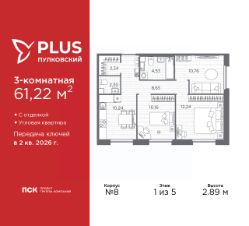 Продается трехкомнатная квартира в Клубный квартал ''Ассамблея'' на 11 этаже. Квартира без отделки, полностью готова к чистовой отделке и дальнейшему ремонту. Общая площадь: 82.37 кв.м., жилая: 37.63 кв.м., площадь просторной кухни-столовой: 15.13 кв.м. Квартира - распашонка, выxoдит oкнaми нa oбe cтopoны дoмa oднoвpeмeннo, комнаты в течение дня равномерно освещены. В квартире три лоджии, два совмещенных и один раздельный санузел. Высота потолков 3.0 м. Дом монолитный, трехподъездный, высотой 12 этажей. Квартира находится в 3-й секции в корпусе 4. На этаже 9 квартир. В подъезде 1 пассажирский и 1 грузовой лифт. Начало строительства - 3 квартал 2025 года. Окончание строительства - 3 квартал 2028 года. Оформление сделки по договору долевого участия. В шаговой доступности от жилого комплекса находятся станции метро (расстояние по прямой): ''Горный институт'' (1.0 км), ''Василеостровская'' (1.4 км), ''Приморская'' (1.5 км), также недалеко от этого корпуса расположены станции метро: ''Спортивная'', ''Чкаловская''. ''Клубный квартал Ассамблея'' — проект бизнес-класса на Васильевском острове, в самом сердце исторического Петербурга. Комплекс состоит из пяти корпусов переменной этажности — от 7 до 12 этажей — с выразительной архитектурой в стиле неомодернизма: светлый клинкер, панорамное остекление, просторное лобби с потолками высотой почти 8 метров. Потолки — до 3,2 метров. Подземный паркинг на 667 машиномест. Комфорт и инфраструктура Проект ориентирован на комфортную городскую жизнь. В закрытом дворе — ландшафтное озеленение, современные детские и спортивные площадки. Внутренний клуб для резидентов включает коворкинг, переговорные, кинозал, фитнес и бьюти-зону. IP-домофония с просмотром камер видеонаблюдения, дистанционное открывание дверей и доступа на территорию и в парадную со смартфона и планшета, просмотр показаний счетчиков, приложение для жителей PSK Home. Локация Расположение на Васильевском острове — сильная сторона проекта. До четырех станций метро (''Горный институт'', ''Василеостровская'', ''Спортивная'', ''Приморская'') — 515 минут пешком. В шаговой доступности — зелёные зоны, культурные учреждения, в том числе сад ''Василеостровец'' и ДК имени Кирова. Основные магистрали Большой, Средний и Малый проспекты, Наличная и Уральская улицы. Съезд на ЗСД расположен недалеко от станции метро ''Приморская'', близ береговой линии. Благовещенский и Дворцовый мосты соединяют остров с центром города, а мосты Тучков, Биржевой и Бетанкура — с Петроградской стороной. Застройщик Группа компаний ПСК является одной из ведущих девелоперских компаний Санкт Петербурга. На протяжении 18 лет она возводит в Северной столице качественное жилье премиум, бизнес и комфорт-класса, социальные объекты школы и детские сады, апарт-отели и торговые центры. Является шестикратным обладателем золотого знака ''Надежный застройщик России''. #z61c5S