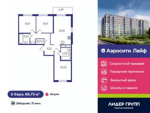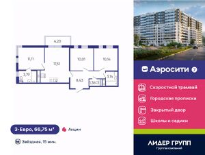 В ЖК Аэросити Life запроектировано 491 квартир с полной отделкой более 2/3 из которых планировки семейного формата: одно двух и трехкомнатные. В секциях от 7 до 11 квартир на этаже, среди которых особое место занимают семейные трехкомнатные евроформата с просторными кухнямигостиными и двумя полноценными ванными комнатами, одна из которых с естественным светом. В большинстве квартир предусмотрены функциональные балконы или лоджии площадью более 4х квадратных метров с панорамным остеклением.