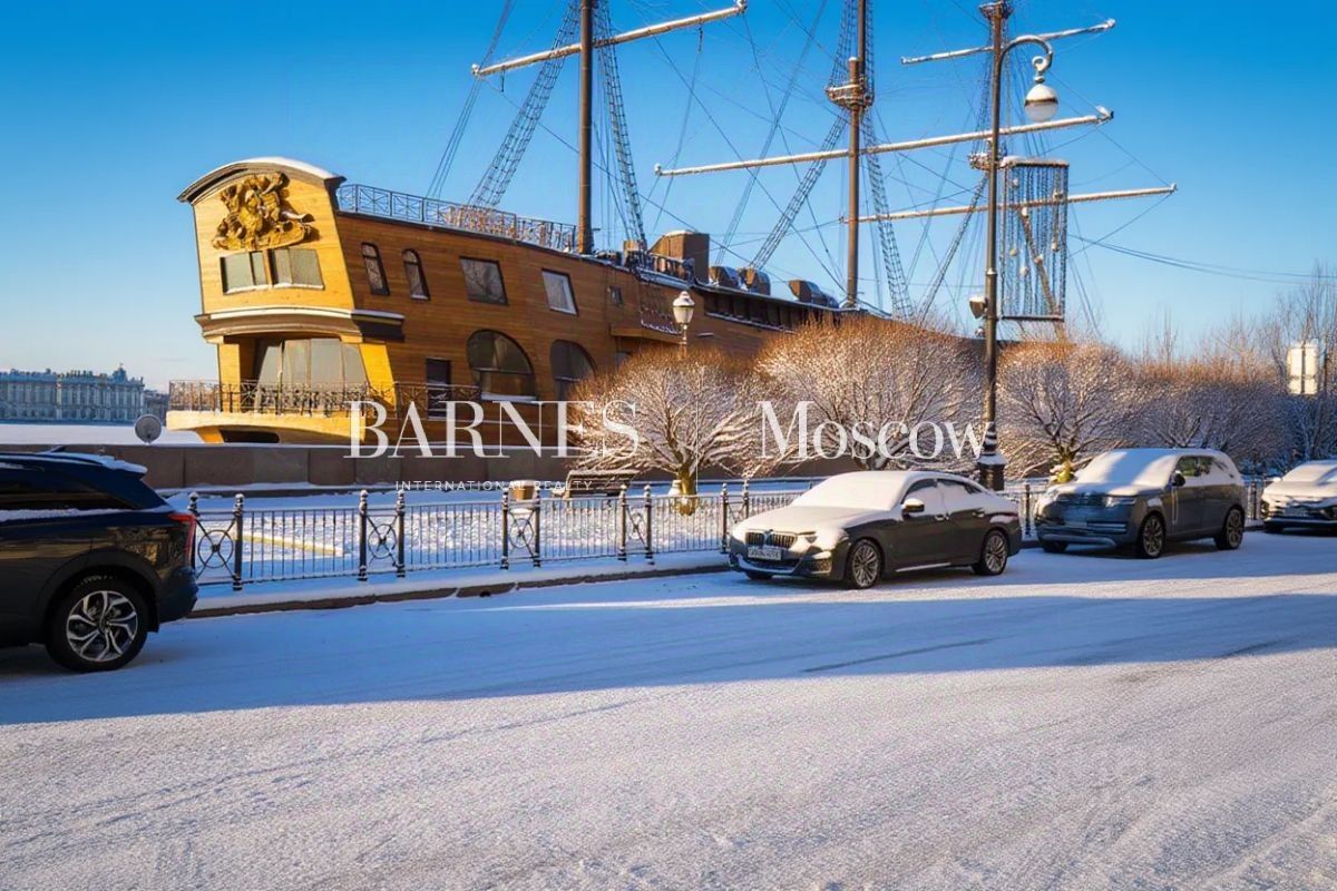 ID: 586738 Резиденция на Мытнинской набережной. Город, который смотрит вам в окна. Иногда недвижимостью называют то, что на самом деле является просто метрами. В этом случае речь идёт о другом — о пространстве, где Петербург становится частью вашего личного сценария жизни. На излучине Невы, там, где вода отражает свет вечерних набережных и золотые шпили, скрыта двухуровневая резиденция, чьё главное достоинство невозможно измерить в квадратных метрах. Это — ракурс на город, который обычно известен только по открыткам и фильмам. Город как картина, а окно — как рама Утро здесь начинается с медленного движения воды под окнами — Невская акватория разворачивается прямо у ваших ног. В одном взгляде — мягкий силуэт Зимнего дворца, строгие линии Адмиралтейства, стрелка Васильевского острова с её торжественными Ростральными колоннами и неподвижная уверенность Петропавловской крепости. Это не фон — это живая сцена, на которой сменяются времена года, свет, погода, а вы всегда занимаете лучшее место в зале. Днём здесь особенно ощутим масштаб города: прогулочные корабли, мерное движение по набережной, туристы, для которых этот вид — событие. Для вас — повседневность. Ночью огни набережной превращают панораму в тонкую графику, где каждый шпиль и колонна очерчены светом. Пространство, в котором можно позволить себе тишину, 355 м²— это не просто ''большая квартира''. Это ощущение частного мира в центре города. Высота потолков 4,3 метра даёт тот самый редкий петербургский воздух — когда пространство дышит, а не замыкается над головой. Это пространство, в котором можно спрятаться от Петербурга, не теряя его ни на секунду из вида. Город снаружи — музей, внутри — ваш ритм За дверью вашего дома — не просто ''центр''. Пять минут пешком — и вы у стен Петропавловской крепости, где история города началась когда-то с маленькой крепости на острове. Чуть дальше — Дворцовая набережная, Эрмитаж, стрелка Васильевского острова. Здесь невозможно ''выйти просто прогуляться'' — вы неизбежно оказываетесь в декорациях, которые многие видят только однажды в жизни. Кофе по утрам — не в сетевой кофейне, а в небольшом бистро в доходном доме XIX века. Вечер — не просто ''в ресторан'', а на ужин, после которого можно пройтись по набережной, глядя, как отражаются в воде колонны и купола. Город вокруг живёт в музейных маршрутах, а для вас становится привычным фоном: театр ''по дороге домой'', выставка ''между делами'', поздний ужин — ''потому что близко''. Для того, кто любит историю, но не живёт прошлым. Кто готов вписать собственную главу в петербургский контекст: через архитектуру интерьера, через личный ритм жизни, через ощущение, что за окнами — не просто вид, а город, который давно стал частью культурного кода. Здесь можно жить тихо и незаметно — и при этом каждый день ощущать, что твой дом стоит на первой линии города, который знают во всём мире. Номер объекта: #1/586738/14501
