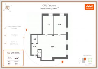 - Гостиной 20.7 м² и двумя спальнями 17.0 м² и 12.1 м²- Функциональным коридором и вместительной кухней-гостиной- Высотой потолков 2.75 м и большими окнами- 2 балконами и 1 лоджией- Изолированной кладовой- 2 раздельными санузлами и ванной комнатойОбщая площадь - 94.5.Квартира с частичным косметическим ремонтом, часть мебели остается новому владельцу. В подарок индукционная варочная панель, вытяжка и кухонный гарнитур, по договоренности - холодильник.Дом панельный, 2015 года постройки, с новыми стеклопакетами, грузовым и пассажирским лифтами. Чистая и ухоженная парадная, отличная управляющая компания. На территории предусмотрена наземная парковка, уютный двор с современной детской площадкой и зелеными насаждениями.Развита инфраструктура: в 5 минутах - магазины Пятерочка, Магнит, Дикси, Вкус Вилл, Фикс прайс, аптеки, пункты выдачи wb, ozon, YM, почта, школа 460 и 2 детских сада. Поликлиника находится на 1 этаже дома.Удобное транспортное сообщение: 5 минут до остановки общественного транспорта, 15-18 минут до станций метро Шушары, Звездная, Купчино, 18 минут до Пушкина, Колпино.4 собственника, документы готовы к продаже, без обременений. Легкая встречная покупка.