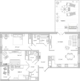 Арт. 117689427 Квартира с тремя спальнями в новом доме бизнес-класса у метро ''Черная речка''.Оптимальное соотношение площади, количества комнат, уровня ремонта и локации!Основные характеристики квартиры:Общая площадь 83 м2Кухня-гостиная 26,3 м2Спальня с гардеробной 17,1 м2Детская комната 15,8 м2Детская или кабинет 12,5 м2Два санузла с душевой кабиной и ваннойГардеробная с постирочной 3 м2Лоджия 3,3 м2Чтобы не потерять - добавьте в избранное или отправьте тому, кого эта квартира может сделать счастливым!Квартира полностью меблирована и оборудована всей необходимой для современной жизни техникой. В том числе кондиционерами. Высокий этаж с видом на Лахта-центр и перспективу города. Благодаря большим окнам, квартира действительно очень светлая. Квартира расположена в квартале ''ЦДС Черная речка''. Это новый современный микро-район со всей необходимой инфраструктурой в 10 минутах езды от центра города. Ухоженная территория, современные фасады, красивые входные группы.Много коммерции, есть все, что необходимо - от кафешек до супермаркетов, детских развивашек, салонов красоты, зоомагазинов и прочего. Все это в радиусе 5 минут пешком!Дворы закрыты от машин и посторонних людей. В них есть детские площадки, зоны отдыха и спортивные площадки, что важно для семей с детьми. На территории комплекса своя школа и детский сад. Вы точно оцените исключительную транспортную доступность этого квартала!10 минут пешком до метро ''Черная речка'' и ''Лесная''.10 минут на машине до Петроградской стороны и выезда на ЗСД.Если вы хотите жить в стильной квартире в новом современном квартале рядом с центром города - звоните и приходите на просмотр квартиры!