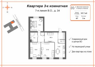 Вознаграждение для агентов 50/50.В 3-х мин ходьбы от метро Василеостровская в современном доме 2002 г.п предлагается великолепная 3-х комн. квартира с прекрасной планировкой: кухня, 3 изолированные спальни, 2 с/у, постирочная, кладовая.Преимущества:- Современный дом в центре ВО- На пешеходной улице- Две квартиры на этажеКвартира двухсторонняя, основной вид на восток и юг. Из окна кухни смотрим на купол Исаакиевского собора. Дом кирпичный, поэтому абсолютно тихо и тепло. Окна Schuco с двойным стеклопакетом и немецкой фурнитурой Winkhaus. Потолок 3,0 м. Вся отделка в светлых тонах. На стенах краска из Германии и в отдельных местах сделаны акценты из красивых экологичных итальянских обоев. По всей квартире на полу финский паркет из березы. Все межкомнатные двери в едином стиле под ясень, с вставками из стекла и фурнитурой AGB. Все, что есть в квартире остается новому собственнику. Все обустроено по авторскому дизайн-проекту.На кухне мебель Geba из Германии в современном стиле. Встроенная техника: плита, духовой шкаф, ПММ Bosch, холодильник Aeg. Итальянская вытяжка Falmec. Фильтры воды, смеситель Esko. Удобные стулья и большой стеклянный стол из Финляндии. 3 спальни обустроены в разных стилях с использование итальянской, греческой, финской корпусной и мягкой мебели. Телевизоры Samsung 65 дюймов. Великолепные финские шторы на окнах. Два санузла. На полу итальянский керамогранит с подогревом. Ванна Doctor Jet, раковины Oxo, душевая кабина Aquapol, смесители, инсталяция от Grohe. Один с/у совмещен с постирочной, где установлены СМА Miele и СушМА Electrolux. Водонагревательный бак на 100 л.В квартире смонтирована современная лучевая система отопления, без стояков, 2 кондиционера General. Электрооборудование от испанcкой Bjc. Во всех помещения приточно-вытяжная вентиляция. В квартире в основном точечное освещение, а люстры с хрусталем из Италии. Есть кладовая и сейф.Идеальная парадная. Лифт Otis. Видеонаблюдение, система охраны 24/7. В доме великолепные соседи, почти не было продаж квартир на вторичном рынке. На 1 эт можно оставлять велосипеды и коляску. Во внутреннем дворе, под шлагбаумом, можно парковать автомобиль(и). В паркинге есть свое машиноместо, но оно НЕ входит в стоимость квартиры.Дом расположен в центре элитного Василеостровского р с выходом на Андреевский бульвар (рядом Андреевский Собор). Это пешеходная зона с фонтанами, высаженными лиственницами и местами для отдыха. У дома памятник сподвижнику Петра I инженеру Василию Корчмину (название Васильевский остров). Все в пешей доступности: магазины и ТЦ, школы и гимназии, детские сады (частные и государственные), поликлиники и центры частной медицины, фитнес клубы.Вы всегда будете чувствовать исторический Петербург: Эрмитаж, Исаакиевский собор, Адмиралтейство, знаковые набережные Невы, музеи и театры. Все очень рядом!Отличная транспортная доступность в любую точку города. До ЗСД 10 мин.АН Винидиктов и Партнеры участник ассоциации агентств элитной недвижимости АРЕА.Ар