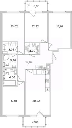 📚 Какая площадь четырёхкомнатных квартир?