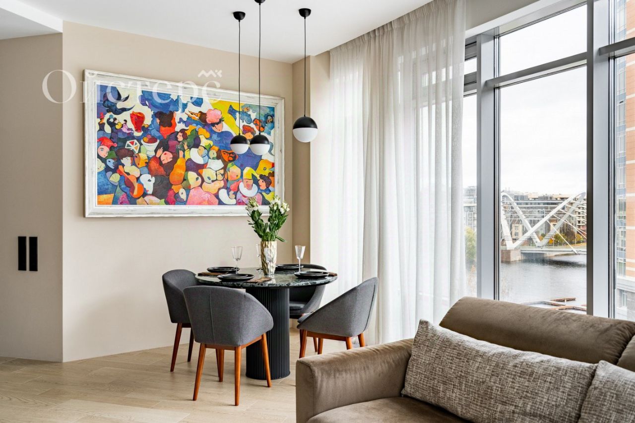Арт. 78341642 Престижное окружение, дизайнерский ремонт и близость к реке и паркам вот что делает эту квартиру не просто привлекательным вариантом, а настоящим сокровищем. Квартира находится на 7 этаже. Площадь 120 м². Высота потолков 3 метра. Просторная планировка включает три спальни, кухню-гостиную, гардеробную и постирочную. Дизайн выполнен по авторскому проекту. Квартира полностью готова к жизни, всё остаётся на своих местах. Техническое оснащение отвечает высоким стандартам: освещение Ledmonster, кухня новейшая техника Miele, кофемашина, духовой шкаф с пароваркой, микроволновая печь. В каждой комнате установлены встроенные потолочные кондиционеры Mitsubishi. Сантехника и плитка испанского производства Porcelanosa. Из панорамных окон в гостиной и с большого утеплённого балкона открывается прекрасный вид на Малую Невку. Жилой комплекс бизнес-класса ''Премьер Палас'' предлагает закрытую охраняемую территорию с круглосуточным видеонаблюдением, частную набережную с живописными видами и причал для яхт. Во дворе детская площадка, салоны красоты, фруктовая лавка, пекарня, винный бутик и другие удобства. В пешей доступности расположены гимназии, школы, детские сады, спортивные объекты, рестораны, кафе, магазины, набережная и парки. 16 минут пешком до м. Чкаловская, рядом выезд на ЗСД. Один собственник, прямая продажа, без обременений. Все документы готовы к сделке. Звоните, чтобы узнать подробности или договориться о встрече!