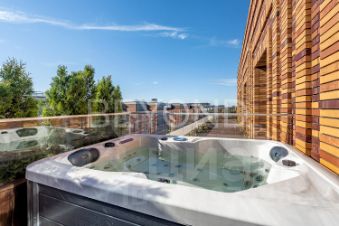Предлагается к покупке квартира с новым дизайнерским ремонтом в жилом комплексе Neva Haus.Площадь — 156 кв. м плюс терраса 25 кв. м, где обустроено продуманное пространство для отдыха и приёма гостей на свежем воздухе. На солнечной террасе расположены несколько функциональных зон: зона отдыха с лежаками для загара и круглогодичным уличным гидромассажным мини-бассейном Arctic Spa, уютная столовая зона с газовым грилем, столом, креслами и диваном для семейных посиделок. Маркиза с электроприводом и подсветкой защитит от дождя и яркого солнца, а по периметру высажены туи и устроена декоративная подсветка.Интерьер квартиры выполнен в современном стиле с тщательно подобранными премиальными материалами. Мастер-спальня с собственной ванной и с просторной гардеробной с окном, вместительными шкафами и туалетным столиком, две детские комнаты, окна которых выходят в тихий, дизайнерский двор, постирочная и объединённая гостиная с кухней-столовой создают функциональное и уютное пространство для семьи. Высота потолков — 3,8 м, что усиливает ощущение наполненности воздухом и светом.В квартире реализованы передовые инженерные решения: система вентиляции воздуха с рекуперацией, кондиционирование, магистральные фильтры на всю квартиру и отдельный фильтр для питьевой воды на кухне.Дом относится к первой очереди комплекса Neva Haus — камерный корпус с подземным паркингом, элегантными холлами, высоким качеством инженерных систем и благоустроенной закрытой территорией.Дополнительно можно приобрести машиноместо в подземном паркинге.Петровский остров - современный и престижный район у самой воды, всего в нескольких минутах от исторического центра Петербурга.Авторская концепция благоустройства набережной Малой Невки делает этот проект уникальным для Петроградской стороны: дизайнерские детские площадки, разнообразная растительность, продуманные зоны отдыха, малые архитектурные формы.У парадных домов предусмотрены велопарковки и станции для зарядки электромобилей. Через мост Бетанкура — прямой выезд к аэропорту и побережью Финского залива. Дорога займёт не более получаса. Остров окружён всем, что определяет высокий уровень жизни: рядом Крестовский остров, лучшие гимназии, рестораны и бутики Петроградки, парки Елагина и Крестовского островов, яхт-клубы и фитнес-пространства премиум-класса.