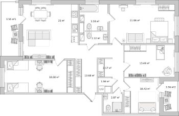 Продается 4-комнатная квартира 494 на 14-м этаже в сданном комплексе бизнес-класса GloraX Заневский.113,85 м² — пространство, где каждая деталь служит комфорту и эстетике: 56,73 м² уютных спален, 21,33 м² светлой кухни-гостиной, собственная терраса, большая лоджия и элегантный французский балкон. Дом сдан — ключи в день сделки.Эта квартира — для тех, кто ищет не просто метры, а настоящую архитектуру жизни.Терраса — ваше открытое убежище над городом: место для завтрака в лучах утреннего солнца, бокала вина на закате или тёплого летнего ужина под открытым небом. Большая лоджия органично дополняет это ощущение свободы — здесь легко устроить зимний сад, уединённую зону отдыха или просто дышать полной грудью, не покидая пределов квартиры. А французский балкон, с его лёгкими линиями и панорамным видом, впускает в интерьер свет и воздух, не нарушая уюта.Кухня-гостиная — просторная, наполненная дневным светом, с увеличенными окнами и ощущением невесомости. Это сердце дома: здесь собираются за долгими разговорами, делятся новостями дня, празднуют и просто отдыхают — в той самой тёплой тишине, что остаётся в памяти надолго.Гардеробная — не просто хранилище вещей, а тихий островок порядка и заботы о себе. А два санузла дарят каждому члену семьи личное пространство и повседневный комфорт без уступок.Отделка White Box — чистый лист для вашего стиля: здесь вы сможете создать интерьер, который будет не просто отражать вкус, но и поддерживать ваш ритм жизни. А технологии — ''Умный дом'', IP-видеонаблюдение и бесплатный Wi-Fi на территории — работают незаметно, но надёжно, обеспечивая безопасность, климат и лёгкость быта без лишнего вмешательства.GloraX Заневский — для тех, кто выбирает жизнь без компромиссов. Всего две минуты до метро ''Ладожская'', пять парков в шаговой доступности, закрытый двор с разновозрастной детской зоной, комьюнити-центр и отапливаемый паркинг с лифтом прямо с этажа. Вокруг — всё, что делает город живым: рестораны, торговые центры, кинотеатры и уютные прогулочные бульвары.Цена указана при 100% оплате или стандартной ипотеке. Подробности — в отделе продаж.