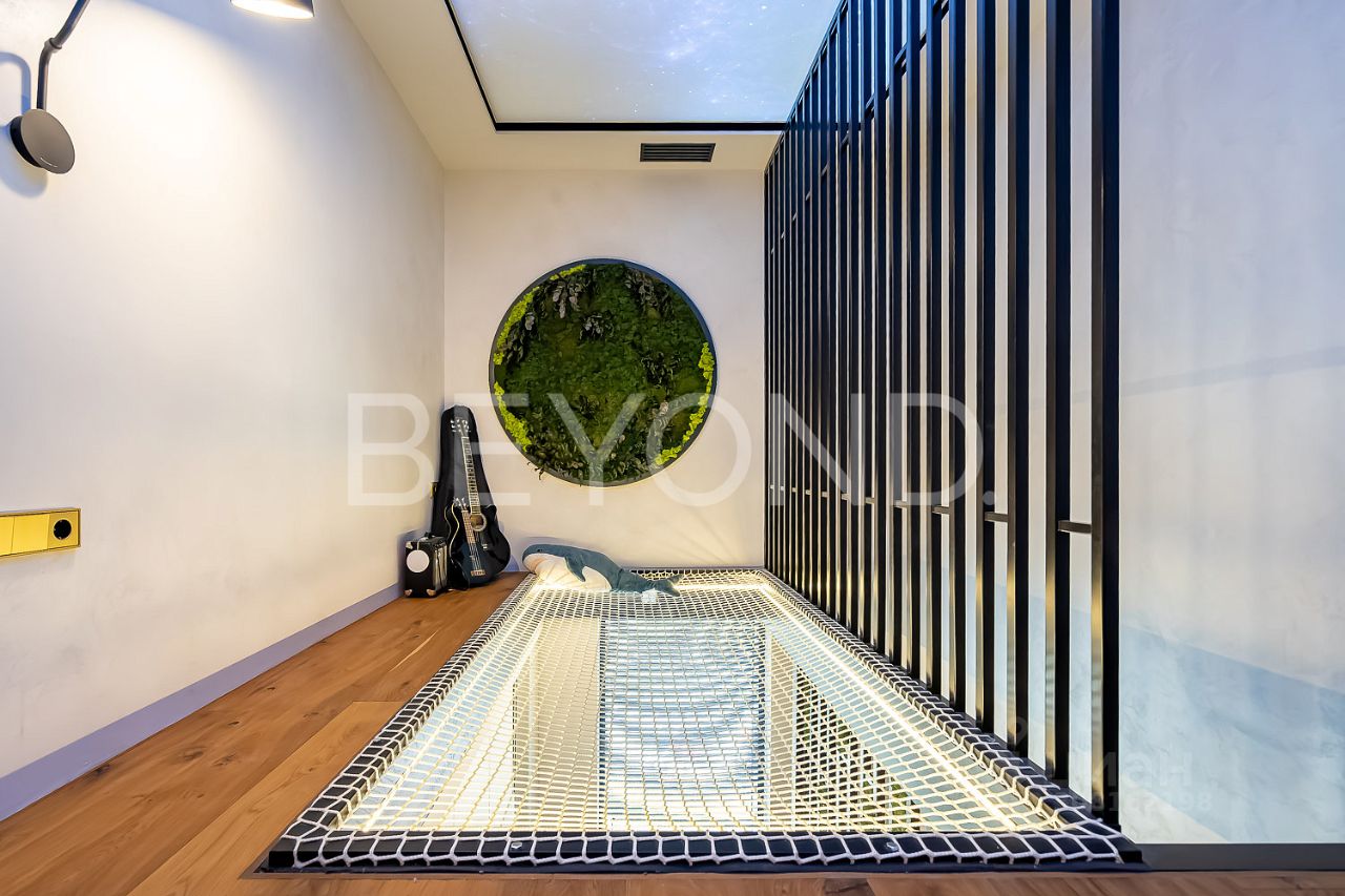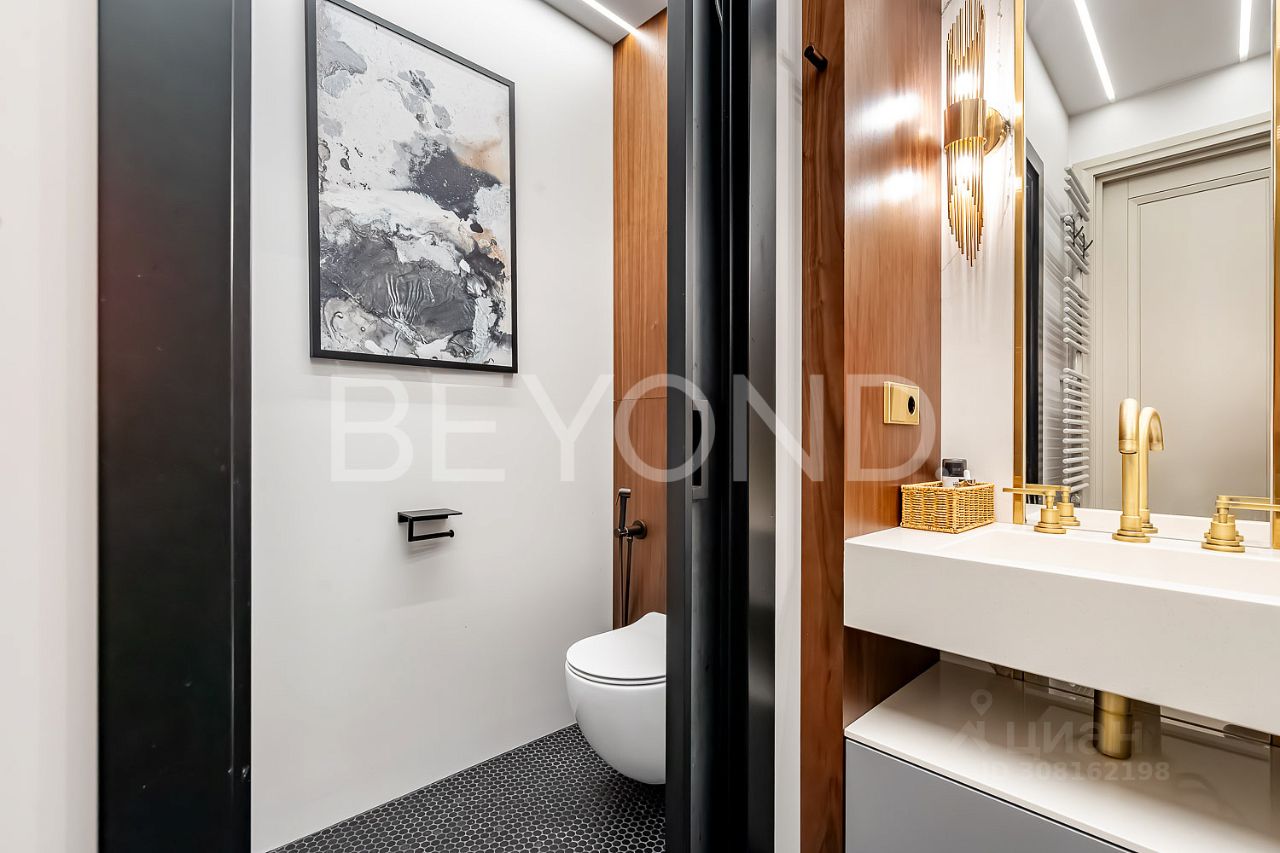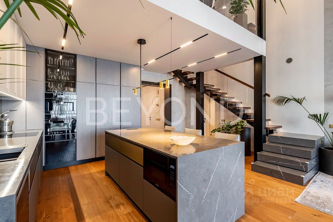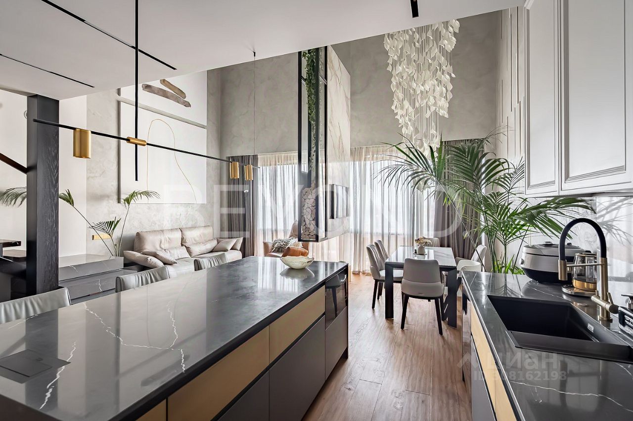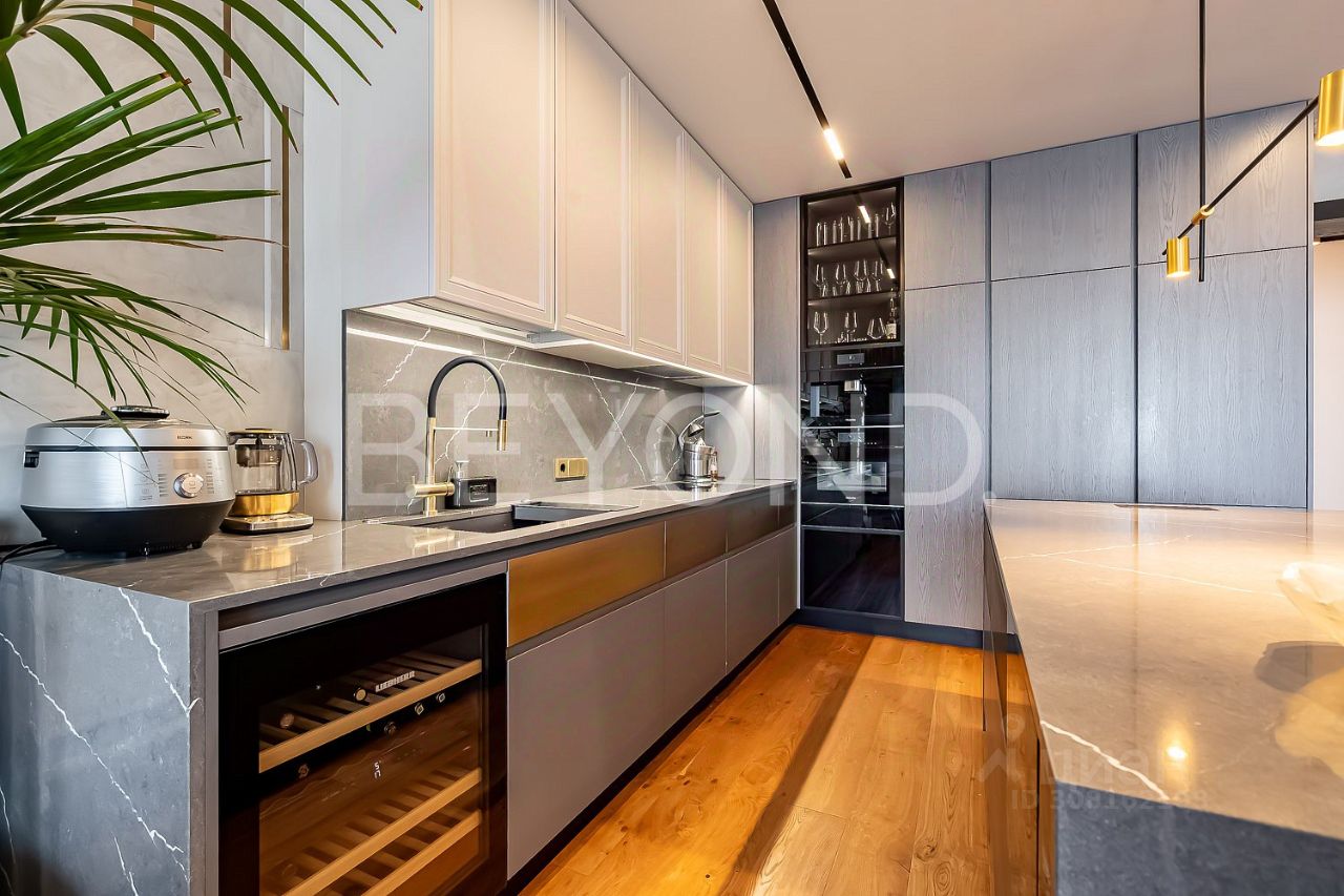 Предлагается к продаже квартира площадью 152,8 кв. м с новым ремонтом высокого уровня в современном жилом комплексе. Фасады дома облицованы архитектурной плиткой Hunter Douglas (Португалия) с интегрированной подсветкой Martini Light, остекление выполнено из профильных систем Reynaers и Alutech, установлены окна Gealan Kubus. В комплексе предусмотрена система фильтрации воды, IP-домофония Urmet, система сбора мусора ECO.LIFT. Лифты KONE MonoSpace обслуживают доступ до уровня подземного паркинга, оборудованного зарядными станциями для электромобилей. Функциональная планировка включает кухню-гостиную-столовую, спальню, две детские комнаты, ванную, гостевой санузел, холл и прихожую. Особенностью квартиры являются три галереи: в гостиной организован спортивный зал с сауной и душевой, в спальне расположена гардеробная, в детской — спальня и зона отдыха. В отделке использованы натуральные материалы: паркетная доска Kahrs (Швеция) из брашированного дуба, цельный итальянский керамогранит. Мебель представлена брендами Koinor (Германия) и Cattelan Italia. Бытовая техника — Miele (полностью сенсорная линейка), холодильники и винный шкаф Liebherr. Спортивное оборудование включает Technogym (Италия), Yamaguchi (Япония), сауну Sawo (Финляндия). Сантехника — Nicolazzi (Италия), Hansgrohe (Германия). В интерьере использованы элементы декора: биокамин, авторские картины Лилии Коган, система освещения ''умный дом'' с люстрой Sagarti (4,2 м) и светильниками немецких и итальянских брендов. Квартира оснащена приточно-вытяжной вентиляцией, кондиционированием Fujitsu (Япония), системой тёплых полов в санузлах и прихожей. В подземном паркинге предусмотрены два машиноместа.
