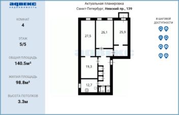 ID: 1914898Предлагаем вашему вниманию 4-комнатную квартиру 140.5 кв.м в Центральном районе Санкт-Петербурга. Фасад практически отреставрирован (скоро снимут строительные леса). Классическая петербургская архитектура, инфраструктура центрального района - всё сошлось в одной точке.Квартира с роскошным балконом расположенная на 5 этаже пятиэтажного кирпичного дома. Общая площадь - 140.5 кв. м. Жилая площадь - 98,8 кв.м. Кухня - 12,7 кв.м. Раздельный санузел. Высота потолков - 3.2 м.. Панорамные виды на Невский проспект Квартира под ремонт.Доходный дом в стиле эклектики был спроектирован Эдуардом Васильевичем Гольдбергом. Здание было построено в 1879-1880 годах Пусть Вас не пугает возраст: он добавляет зданию лишь аристократический лоск и ничего больше.Капитальные работы по ремонту крыши были произведены менее 20 лет назад. Капитальный ремонт произведен в 1961 году. Парадная тоже поддерживается в отличном состоянии.В доме не много квартир, так что всех соседей будете знать в лицо. Машину можно бесплатно парковать в закрытом дворе - большое преимущество в текущих реалиях.Что касается инфраструктуры, здесь у вас будет полный доступ к благам центрального района Санкт-Петербурга:• 6 минут пешком до станции метро ''Площадь Александра Невского''• 14 минут пешком до станции метро ''Площадь Восстания''• 18 минут пешком до станции метро ''Маяковская''• до Таврического сада минут 20• до Овсянниковского сада тоже не далеко • 15 минут до ТЦ ''Невский центр'' и ТЦ''Галерея'',• Рядом 3 детских сада, общеобразовательные и спортивные школы.• Рестораны, кафе, кинотеатры, магазины, частные клиники в шаговой доступности.Собственник один, более 5 лет в собственности, без обременений, никто не прописан, продажа прямая. Квартира готова к просмотру в любое удобное для Вас время. Звоните, чтобы договориться о встрече!Здание без лифта, это единственный минус!