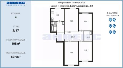 4-к, Богатырский проспект, 32 корп. 1 Показать на карте