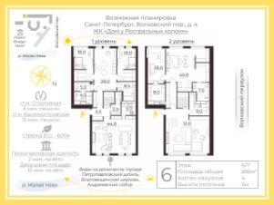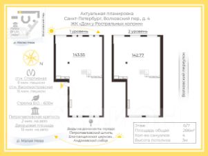 Арт. 112132508 Продаётся уникальная двухуровневая квартира в самом центре Петербурга — Волховский, 4Общая площадь: 286 м²Этажи: 6 и 7 (последние)Потолки: 3 метраСтатус: квартира (жилое помещение)Собственник: 1 физическое лицо, прямая продажаСостояние:Без ремонта — идеальный вариант для индивидуального дизайн-проекта.Планировка и окна: Свободная планировка, без несущих стенДвусторонняя ориентацияУвеличенные окна на верхнем уровнеОсобенности:Два уровняПоследние этажиПанорамные видыДом в историческом районеУникальная возможность реализовать интерьер в знаковом месте городаДом:Круглосуточная охранаСистема видеонаблюденияСистема контроля доступаЗакрытая территорияПодземный паркингИнфраструктура и окружение:Дом расположен на Волховском переулке, в непосредственной близости от Ростральных колонн, Стрелки Васильевского острова, Дворцового моста и Зимнего дворца.Развитая инфраструктура: музеи, рестораны, университеты, общественный транспорт — всё в шаговой доступности.Звоните!
