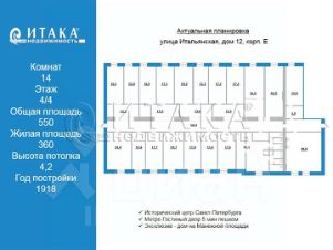 1-92291 Идеальное приобретение для зрелых ценителейБольшая квартира в сердце Санкт-Петербурга, в престижной Золотой зоне — выбор для тех, кто ценит историю, комфорт и статус.Всего несколько минут пешком до Михайловского театра, Русского музея и Летнего сада.Здание — часть исторического архитектурного комплекса, где когда-то размещались кадетский корпус Императора Александра II, военно-топографическое училище и флигели инженерного ведомства (возведено в 1878 году, с перестройками до 1918 года). Автор — архитектор И. И. Вальберг.Квартира расположена в элитной части Петербурга, в живописном уголке исторического центра с атмосферой спокойствия зеленых дворов, в близости к Невскому проспекту, в месте для комфортной жизни и отдыха.Площадь квартиры 550 кв. м с продуманной планировкой и ориентацией на две стороны. Высокие потолки (4,2 м) и массивные окна , семь из которых выходят в Старо манежный сквер, создают атмосферу уюта и свободы. Минимальное количество несущих стен позволяет адаптировать квартиру под семейные нужды или современный стиль. Восемь окон другой стороны выходят в тихий зеленый двор.Квартира одна на этаже, к ней, через отдельный холл, ведет своя лестница, и это последний, 4 этаж, над которым, под высоким коньком крыши возможно оборудовать великолепную мансарду и увеличить площадь еще на 500 кв. м! Квартира одна на площадке, и это создаст атмосферу своего отдельного дома, в котором можно устроить двухуровневое пространство библиотеки, гостиной с камином (это возможно!) и вторым светом , роскошные спальни. Редкой привилегией в Центральном районе будет парковочное место для вашего автомобиля в охраняемом дворе дома.Итака. Работаем с 1993 года.