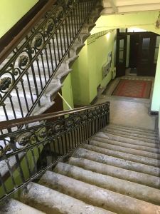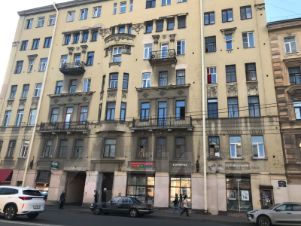 Маяковского. Площадь 286,5 м2. Расположена на 4 этаже, есть лифт. Есть печи, лепнина, фреска. Так же в одной из комнат жила Образцова. Квартира фасадная, есть лифт, требует ремонта