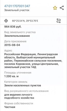 Земельный участок, Кировское